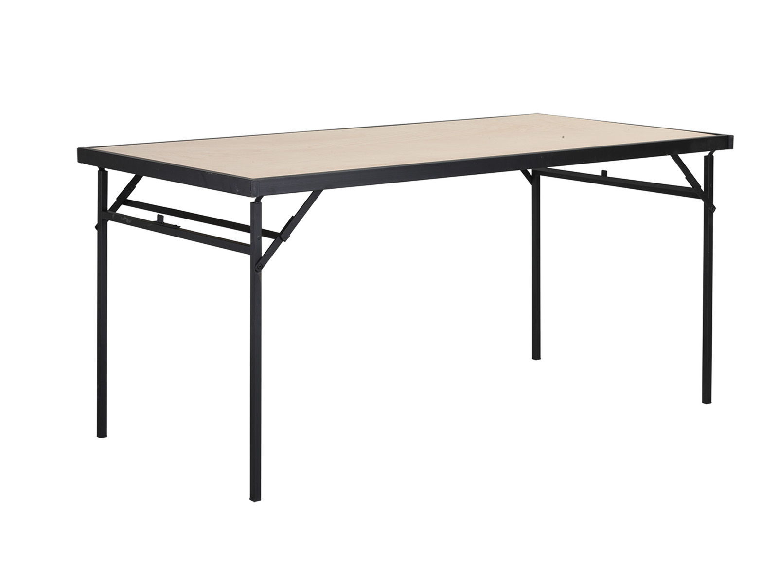 Összecsukható lábú bankett asztal, színterezett acélszerkezettel, 18 mm-es ABS élzárt bútorlap asztallappal. Rakásolható, beltérbe ajánlott. Tárolásra is alkalmas asztalszállító kocsi elérhető hozzá.