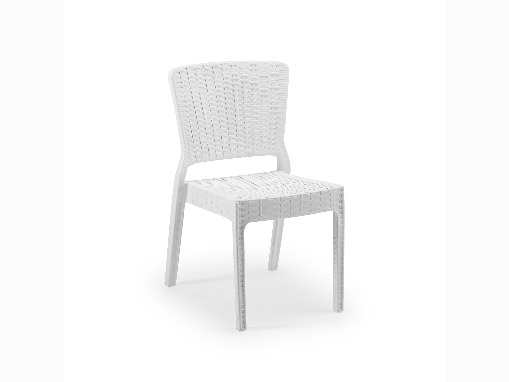 Polyrattan hatású, egybeöntött műanyag szék. Rakásolható. Kültérre is ajánlott. Ülőpárna elérhető hozzá.