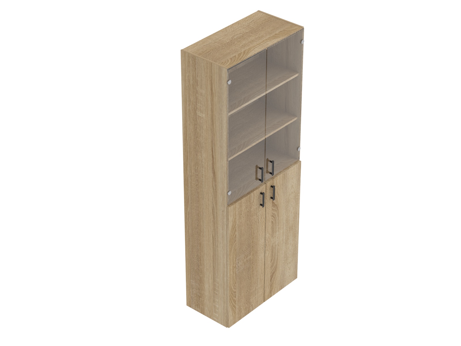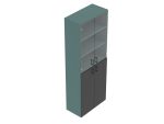 A szekrény korpusz és az ajtó 18 mm vastag laminált faforgácslapokból készülnek, az üvegajtó 5 mm vastagságú élcsiszolt üvegből Az élek élzárása 2 mm vastag ABS élanyaggal történik. 2 db 3R magas faforgács ajtóval és 2 db 3R magas üvegajtóval. Rendelhetők a szekrényekhez vastagabb laminált faforgácslap fedőlapok is, hangsúlyozva a szekrények és asztalok összetartozását. A szekrények magassága 74 cm-től 220 cm-ig terjedhet, szélességük 40 illetve 80 cm.