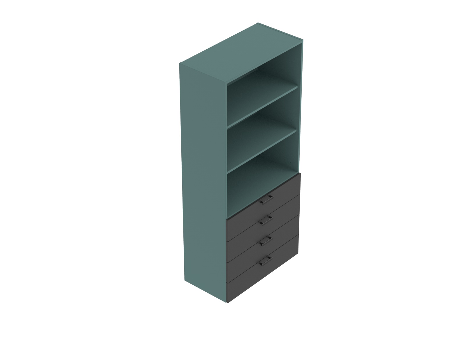 A szekrény korpuszok és fiókelők 18 mm vastag laminált faforgácslapokból készülnek, alul 2R magasságban 4 fiók, felül 3R magasságban nyitott, faforgácslap előlapokkal. Az élek élzárása 2 mm vastag ABS élanyaggal történik. Rendelhetők a szekrényekhez vastagabb laminált faforgácslap fedőlapok is, hangsúlyozva a szekrények és asztalok összetartozását.