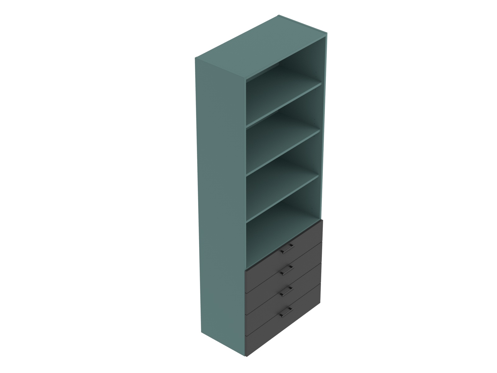 A szekrény korpuszok és fiókelők 18 mm vastag laminált faforgácslapokból készülnek, alul 2R magasságban 4 fiók, felül 4R magasságban nyitott, faforgácslap előlapokkal. Az élek élzárása 2 mm vastag ABS élanyaggal történik. Rendelhetők a szekrényekhez vastagabb laminált faforgácslap fedőlapok is, hangsúlyozva a szekrények és asztalok összetartozását.