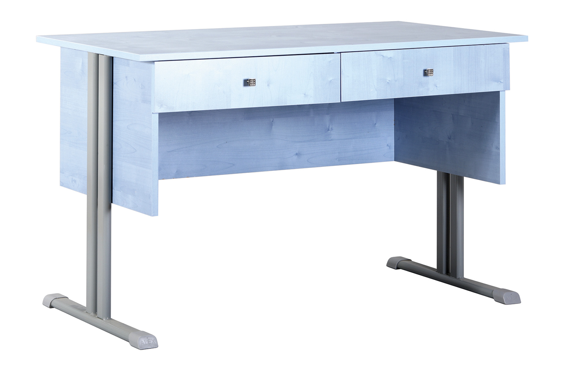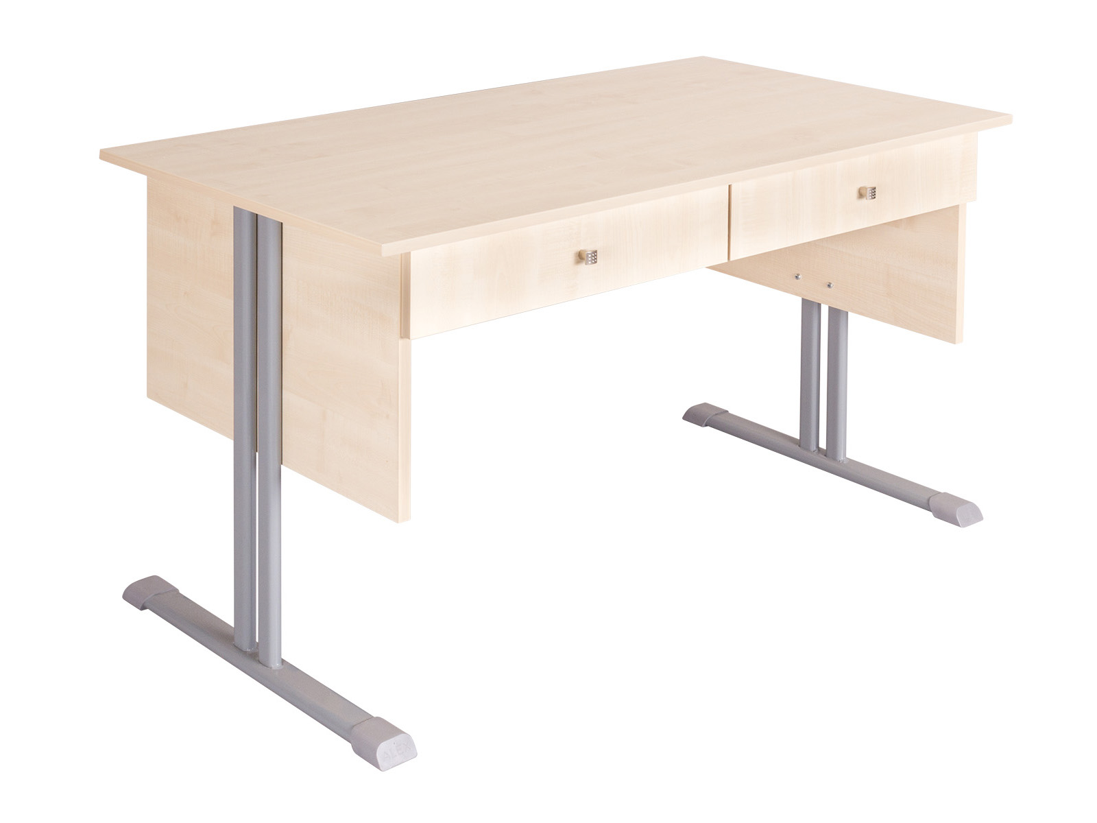 Atlasz 2 fiókos tanári asztal lábszerkezete 50*25 mm-es síkovál csőből készülnek, melyeket csúszásgátló műanyag papucsokkal láttunk el. Asztallap, homloklap és fiók: 18 mm vastag laminált bútorlap, 2 mm vastag ABS élzárás, sarkos kivitel. Asztallap alatt 2 db fiókkal szerelve.