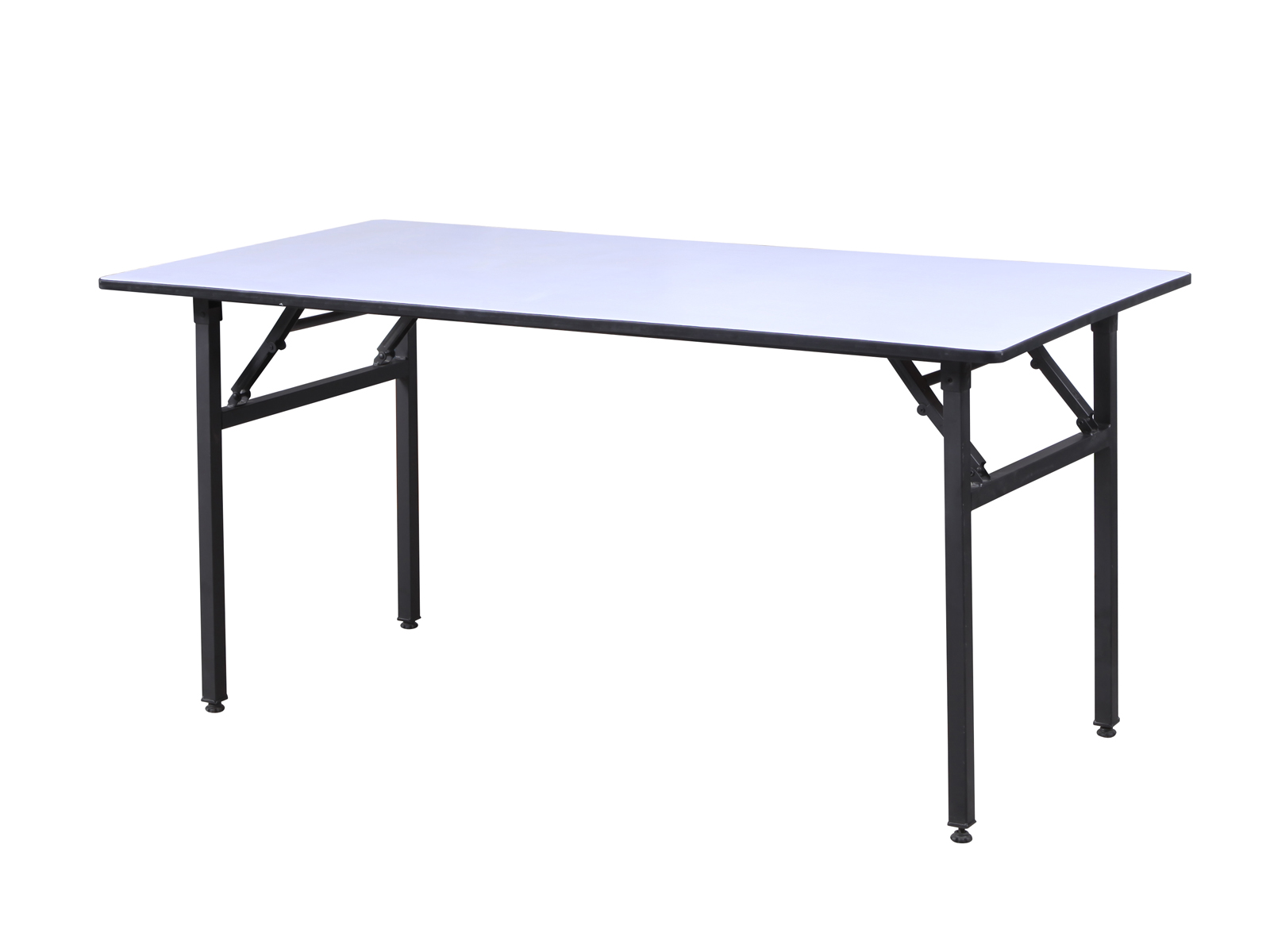 Összecsukható lábú bankett asztal, 160×80 cm-es, rétegeltlemez bázisú, vékony, puha, vízhatlan réteggel bevont asztallappal, PVC élzárással. Beltérbe ajánlott. Tárolásra is alkalmas asztalszállító kocsi elérhető hozzá.