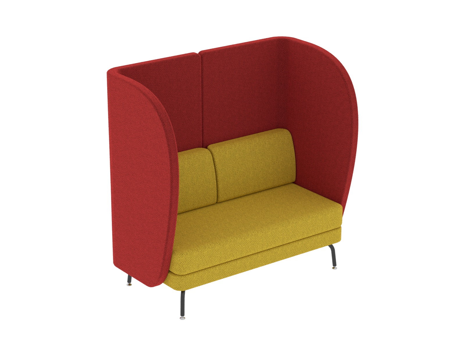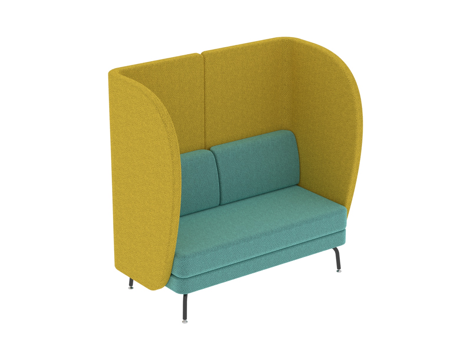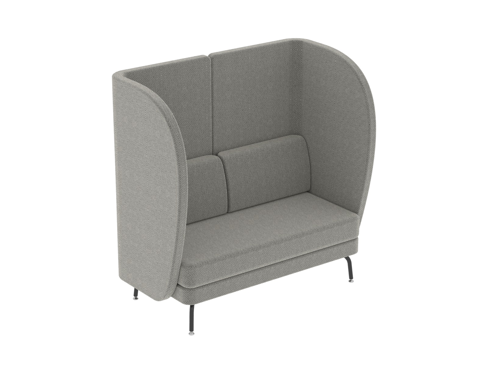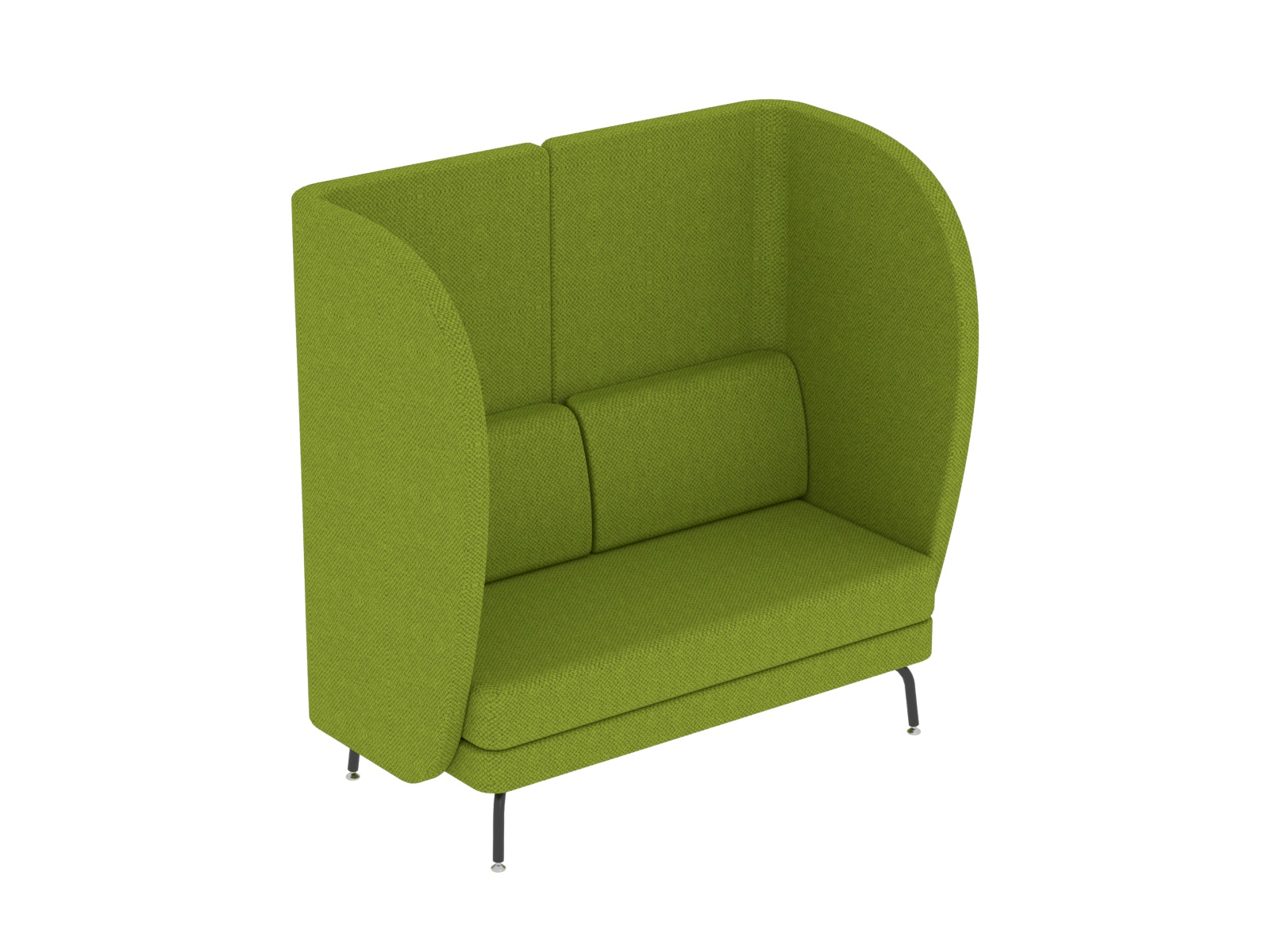 Kényelem és design találkozása fogadótérben, közösségi térben, irodában, vagy tárgyalóban. Hívogatóan kényelmes, ugyanakkor funkcionális és praktikus is. Alkalmas pihenőbútornak a szünet eltöltéséhez, koncentrációt igénylő feladatokhoz, vagy csak egy telefonbeszélgetés lefolytatásához. Spontán megbeszélések helyszíne is lehet, ugyanakkor megteremti a lehetőséget a privát szférához, vagy ha csak egy kis nyugalomra, csendre vágyunk. A hordozó szerkezet 16 mm-es faforgácslapból készül, az íves részeknél zártszelvény biztosítja a forma tartósságát. A lábszerkezet elektrosztatikus porszórással felületkezelt 25 mm-es acélcsőből készül, a lábak végén króm önbeálló tappancsokkal. Az ülőfelület és a háttámla 15 cm vastag formavágott szivacsból készül, a külső felületeket 1 cm-es szivacs borítja, a karfa belső felén 2 cm-es szivacs gondoskodik a kényelemről. Teljes felületén nagy kopásállóságú kárpitot használunk.