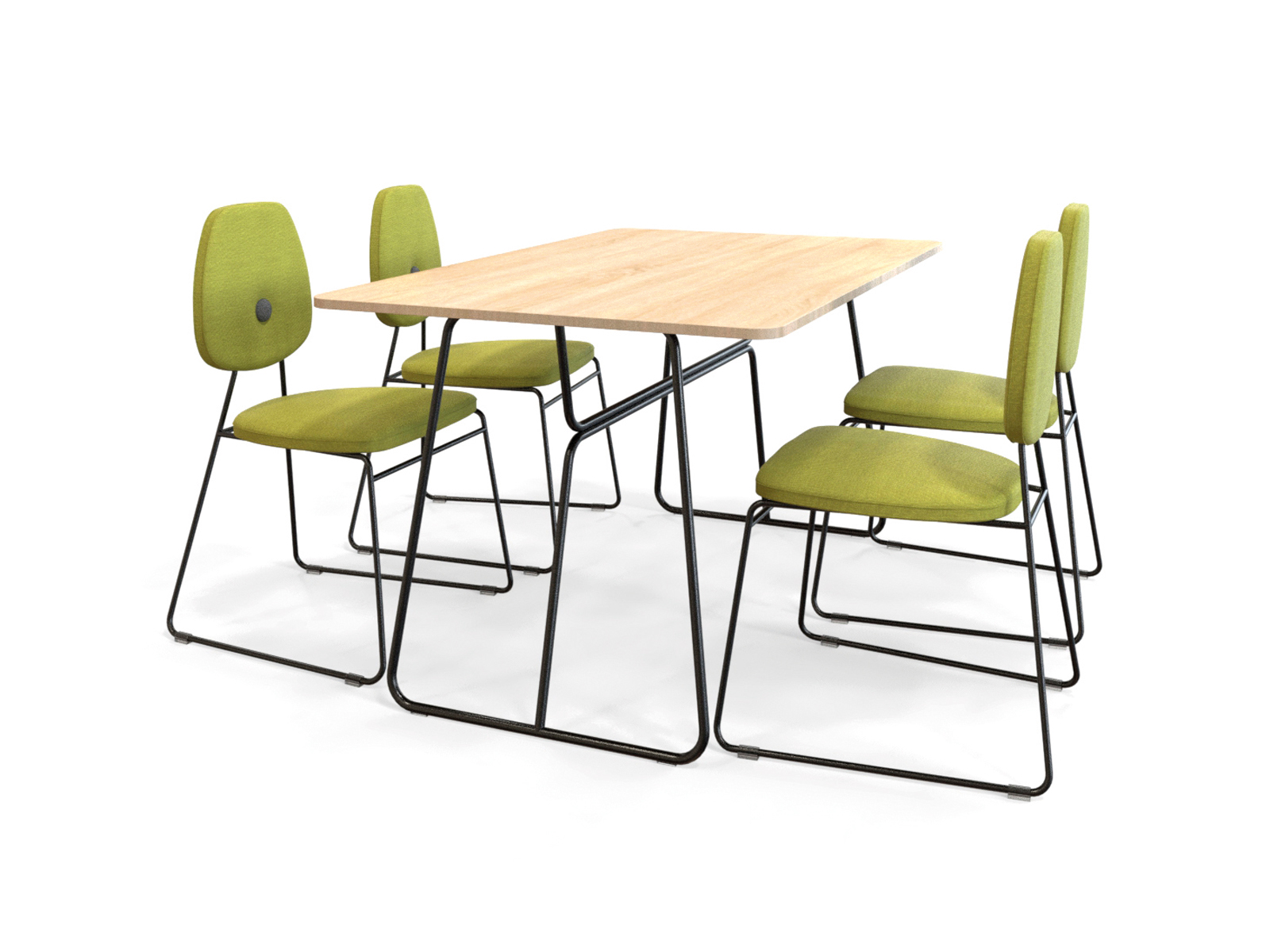 1 db Béta asztal 135×90 cm-es laminált asztallappal, 4 db Béta szék kárpitozott ülőlappal és háttámlával