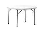 Összehajtható lábú acélvázas bankett körasztal, szürke kalapácslakk bevonattal, 122 cm átmérőjű, szürke színű, 50mm vastag műanyag HDPE asztallappal. Kültérre is ajánlott, rakásolható.