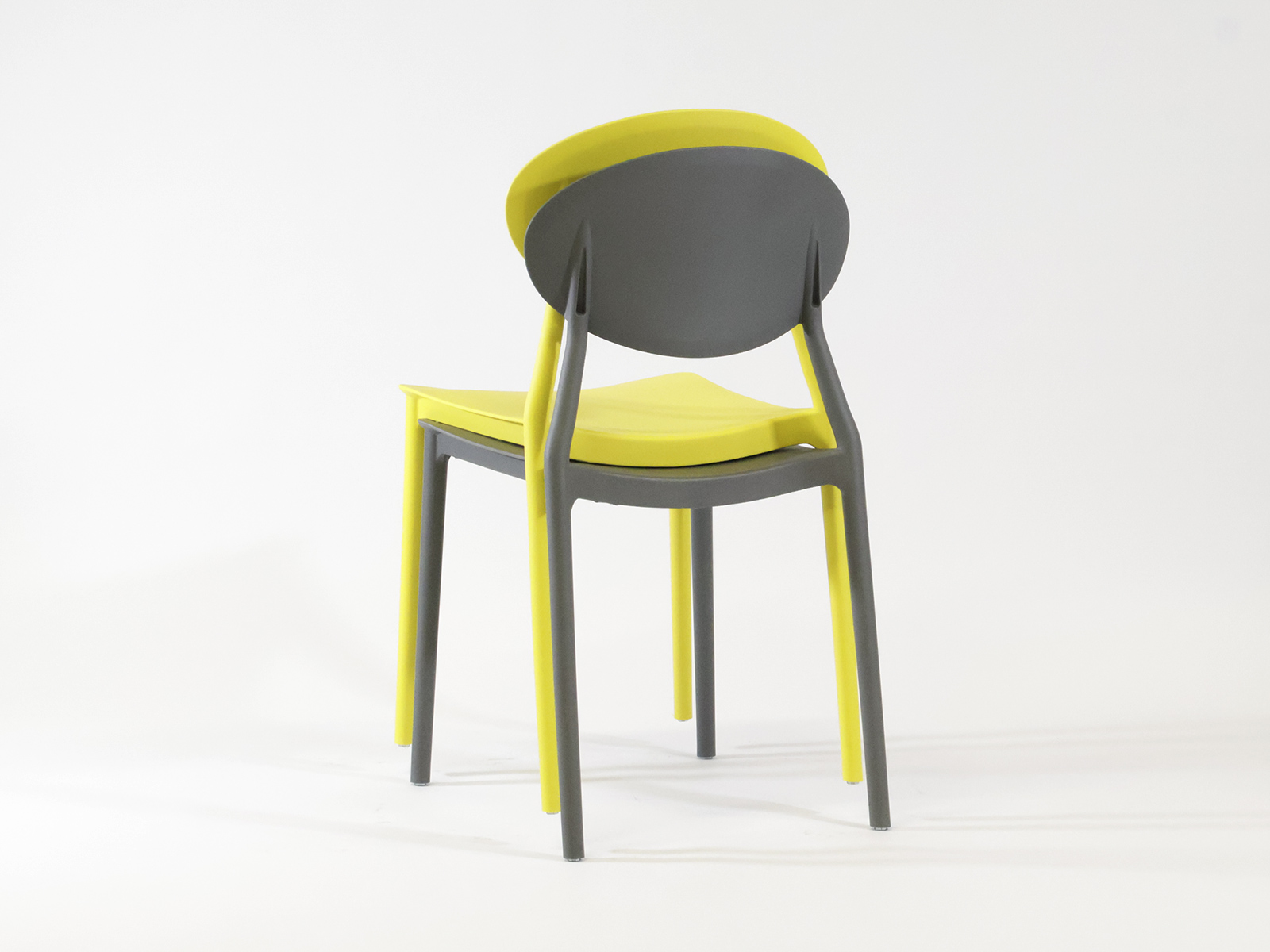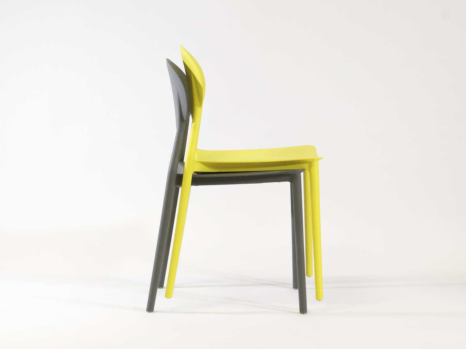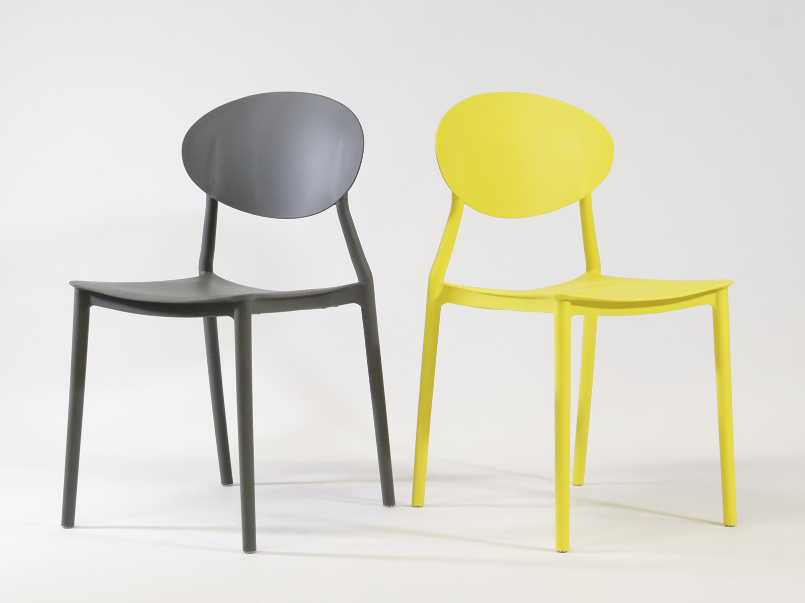Műanyag vázszerkezetű kültéri szék, műanyag ülőfelülettel és háttámlával, karfa nélküli kivitel elérhető raktárról sárga és szürke színben. Rakásolható.
