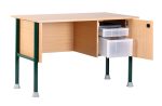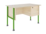 Botond oldalszekrényes tanári asztal lábszerkezete 40-es átmérőjű acél csőből készülnek, melyeket csúszásgátló műanyag papucsokkal láttunk el. Asztallap, homloklap és oldalszekrény: 18 mm vastag laminált bútorlap, 2 mm vastag ABS élzárás, sarkos kivitel. Asztallap alatt 1 db oldalszekrénnyel szerelve, melyben 1 db Inbox M és 1 db Inbox L műanyag fiók található.