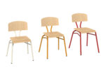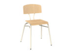 Botond tanulói szék vázszerkezete: 25 mm átmérőjű szinterezett acél cső váz, műanyag végzáró elem, ülő- és háttámla: bükk rétegelt lemez, natúr lakkozott, rakásolható, gerincvédő kivitel
