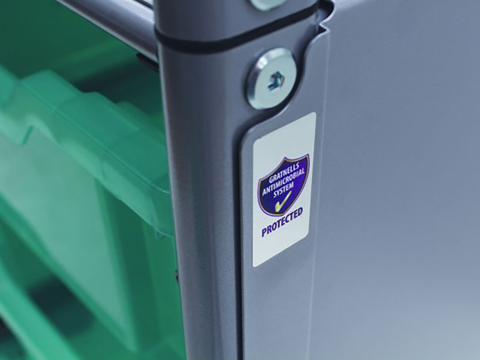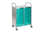 Callero Shield antimikrobiális kocsi, StopSafe fékezhető nagy görgőkkel, 16 db F1 Gratnell