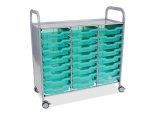 Callero Shield antimikrobiális kocsi, StopSafe fékezhető nagy görgőkkel, 24 db F1 Gratnell