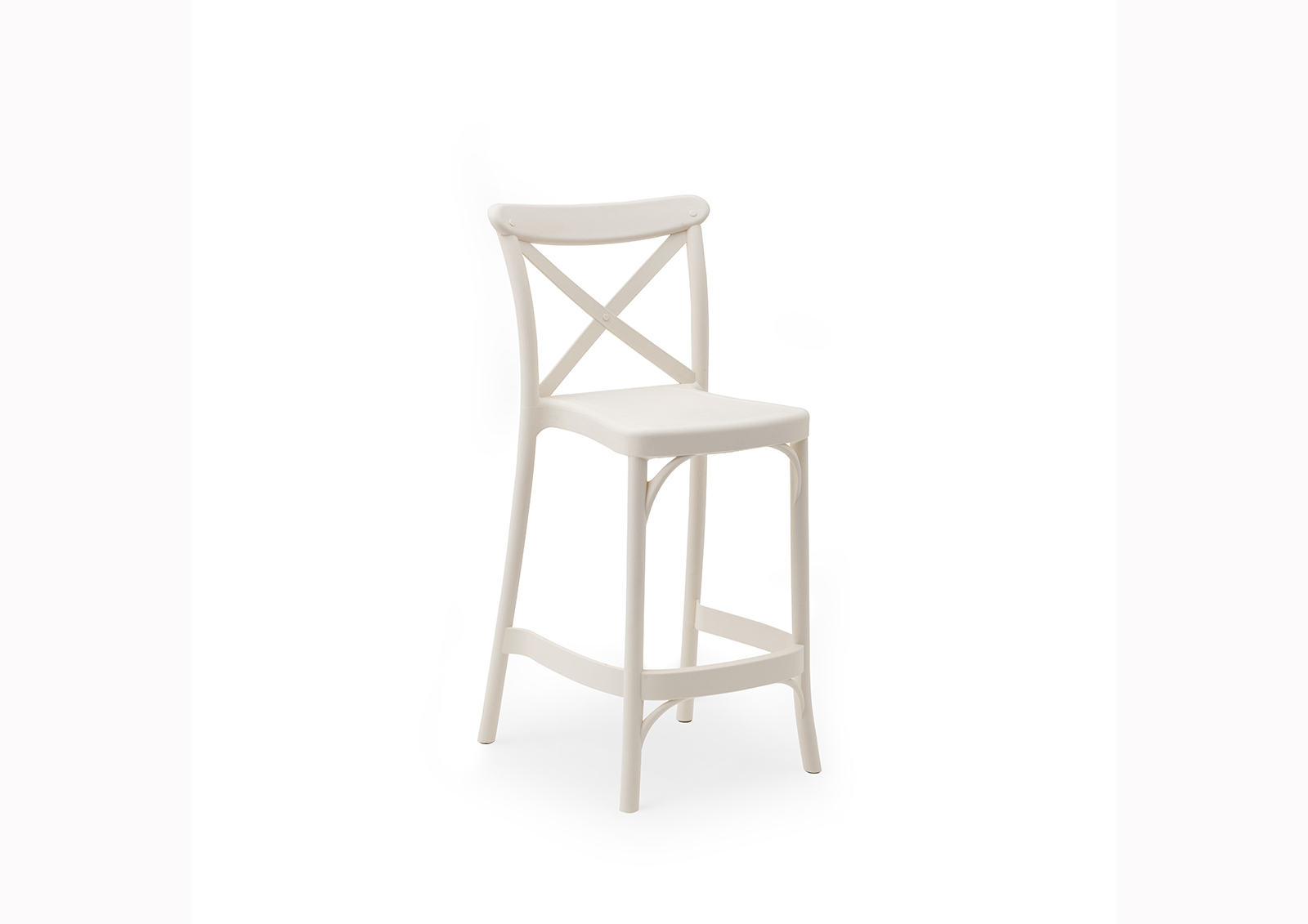 Üvegszállal erősített műanyag bárszék, rakásolható kivitelben. Ülésmagassága 65cm. Kültérre is ajánlott.