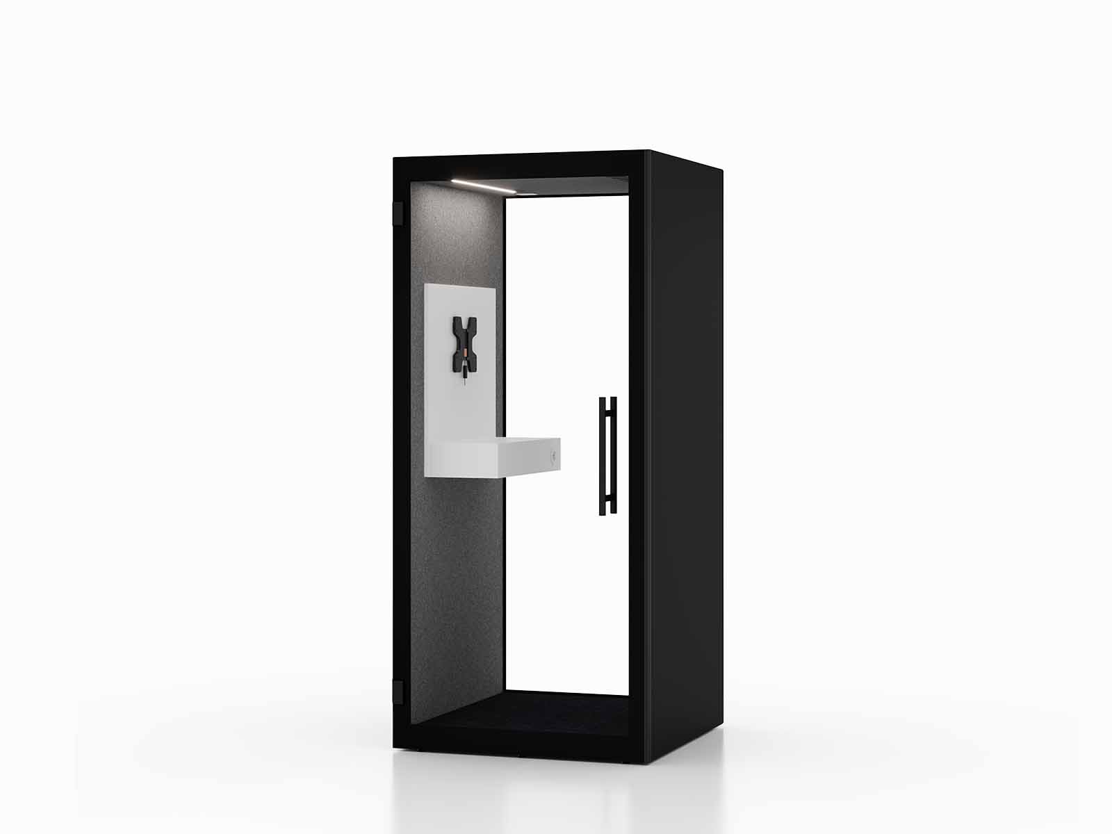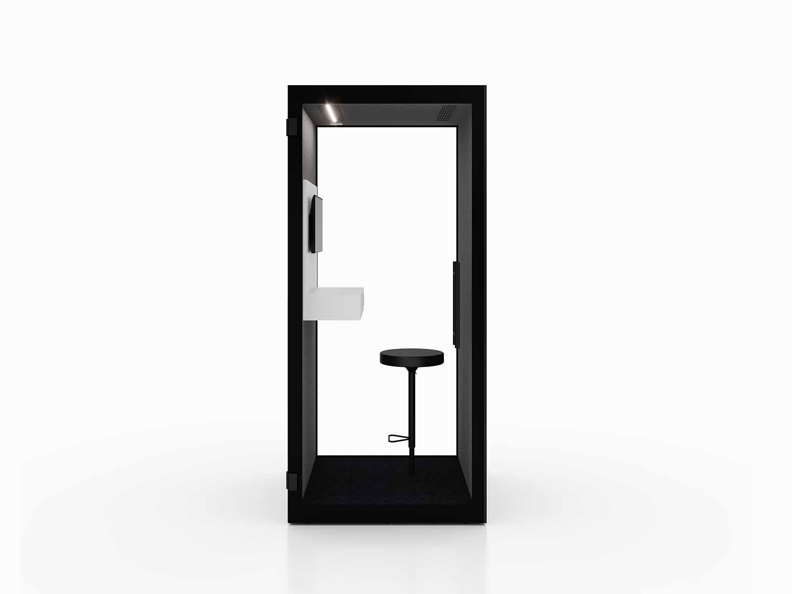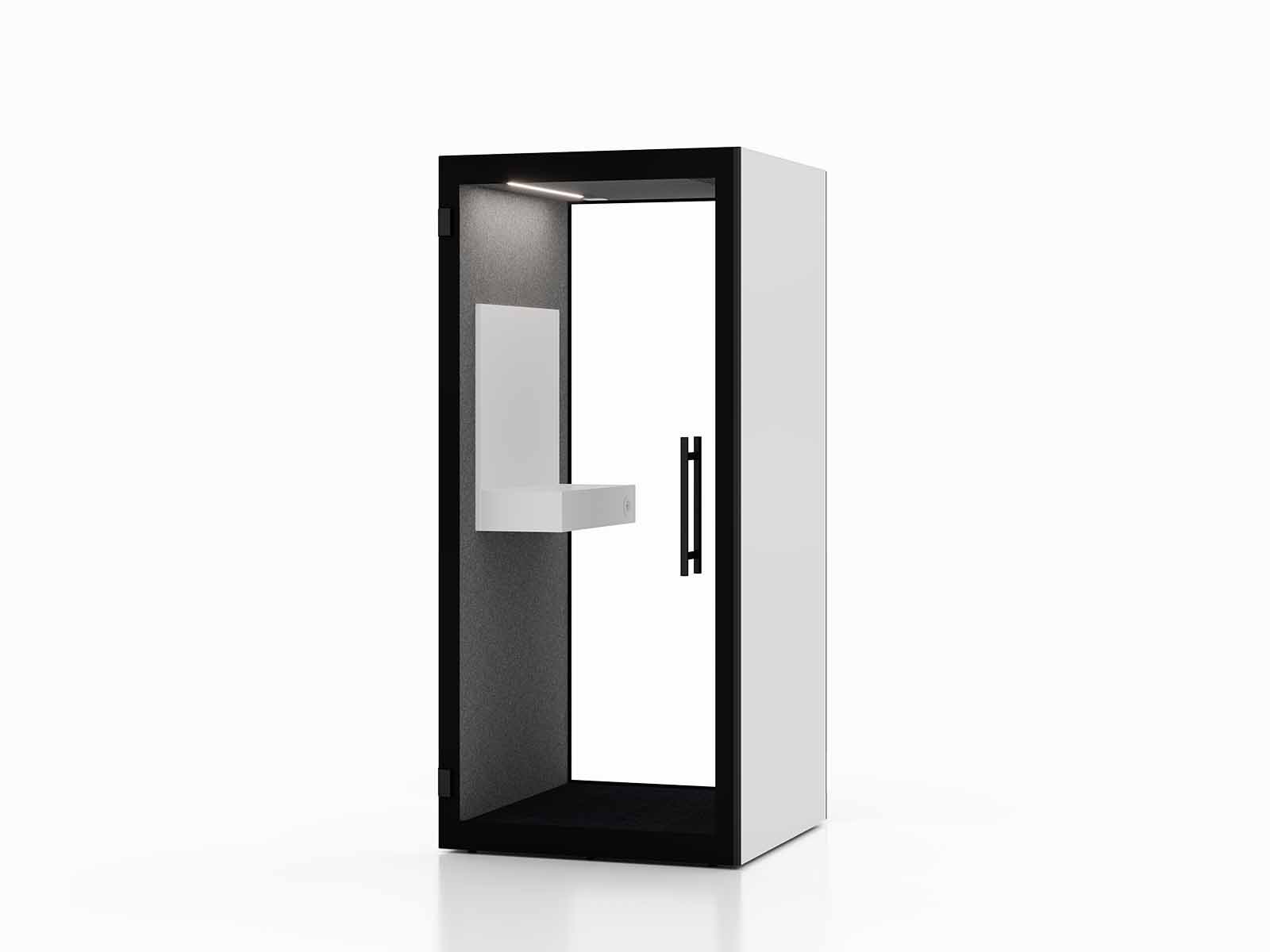 Egy csendes hely a kreativitás kibontakoztatásához. Növelje hatékonyságát a különleges hangszigetelésnek köszönhetően. A nagy forgalmú és zajos környezetben ideális megoldás telefonálásra, megbeszélésre, relaxációra. A korpusz felülete festett acéllemez, RAL 9011 fekete és RAL 9003 fehér színekben választható. (felár ellenében rendelkezésre állnak további színek.) Az ajtó választható nyitásirányú, biztonsági üvegből készül. A belső tér sötétszürke, az asztallap antibakteriális felületű (mélysége 30 cm, magassága 105 cm). Tápcsatlakozó: fali, 110-240 V (10 A) + USB-A + USB-C töltő. A mindig friss levegőt az integrált légkeringető rendszer biztosítja. A megfelelő fényről érzékelős LED lámpa gondoskodik. Szintezhető állító talpakkal a padló egyenetlenségeinek kiküszöbölésére. A fülke belső mérete: 87x204x98 cm. További kiegészítők külön rendelhetők. A telepítésről kérje írásos árajánlatunkat.