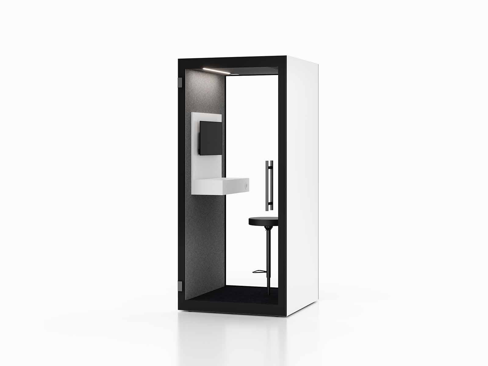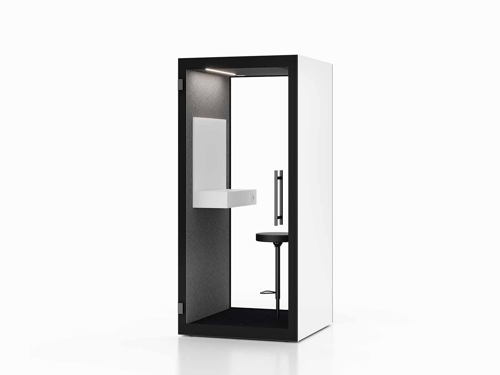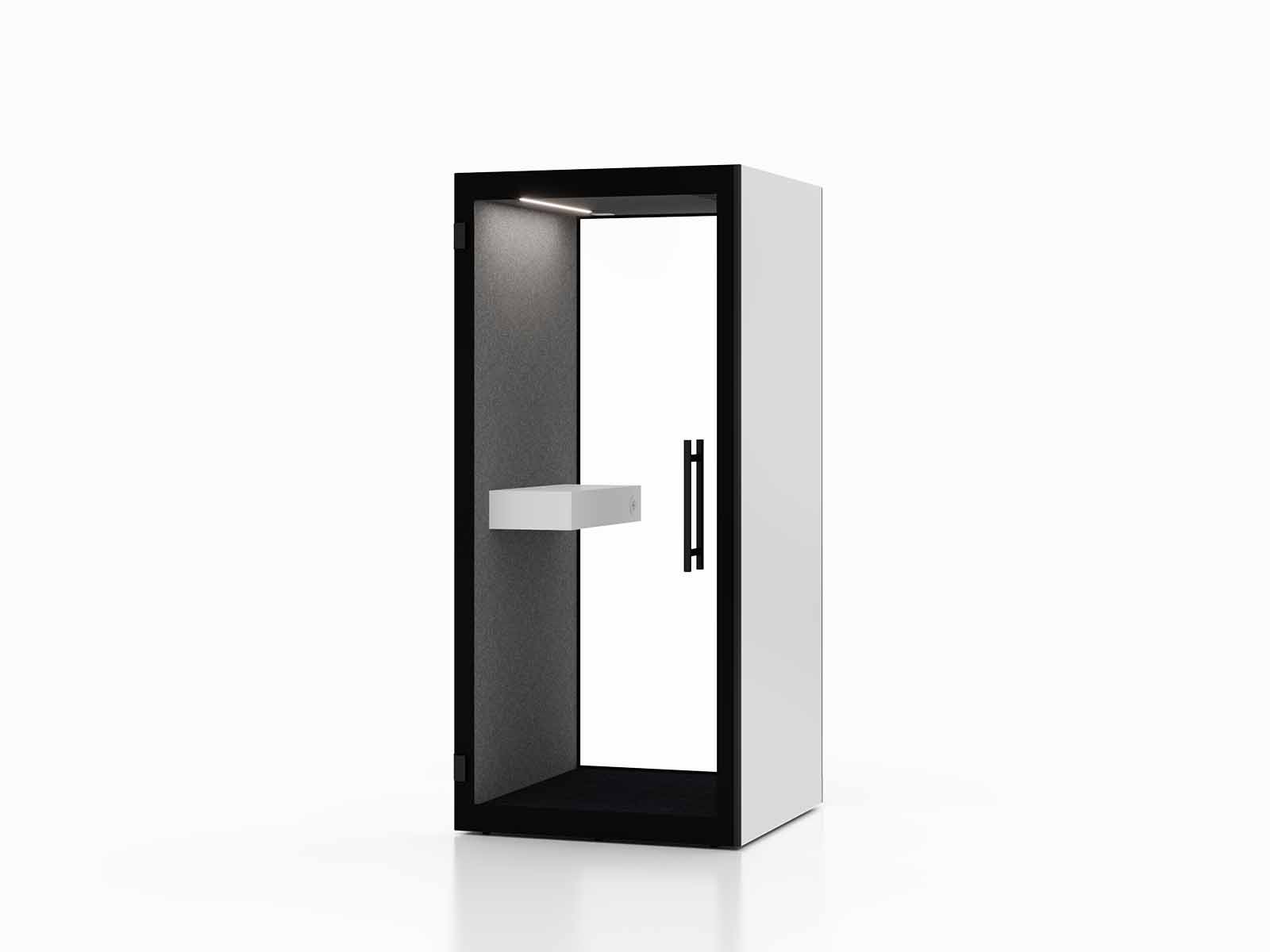 Egy csendes hely a kreativitás kibontakoztatásához. Növelje hatékonyságát a különleges hangszigetelésnek köszönhetően. A nagy forgalmú és zajos környezetben ideális megoldás telefonálásra, megbeszélésre, relaxációra. A korpusz felülete festett acéllemez, RAL 9011 fekete és RAL 9003 fehér színekben választható. (felár ellenében rendelkezésre állnak további színek.) Az ajtó választható nyitásirányú, biztonsági üvegből készül. A belső tér sötétszürke, az asztallap antibakteriális felületű (mélysége 30 cm, magassága 105 cm). Tápcsatlakozó: fali, 110-240 V (10 A) + USB-A + USB-C töltő. A mindig friss levegőt az integrált légkeringető rendszer biztosítja. A megfelelő fényről érzékelős LED lámpa gondoskodik. Szintezhető állító talpakkal a padló egyenetlenségeinek kiküszöbölésére. A fülke belső mérete: 87x204x98 cm. További kiegészítők külön rendelhetők. A telepítésről kérje írásos árajánlatunkat.