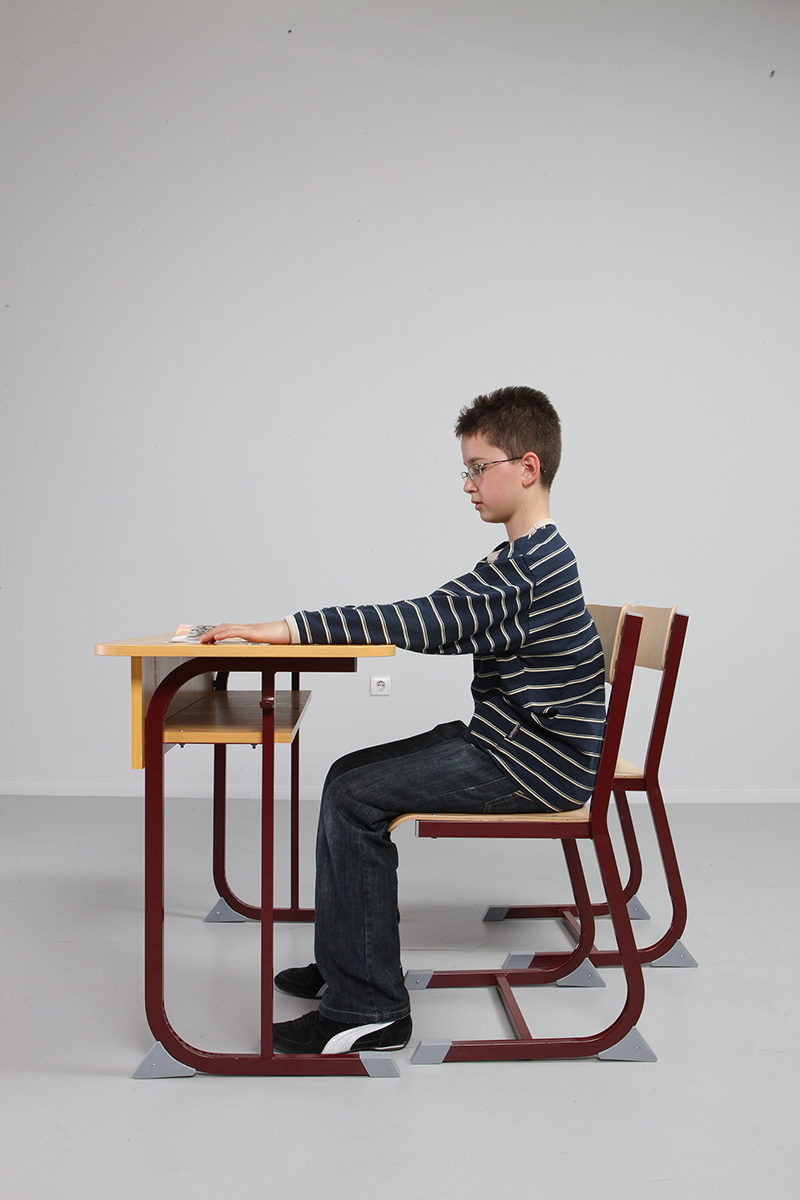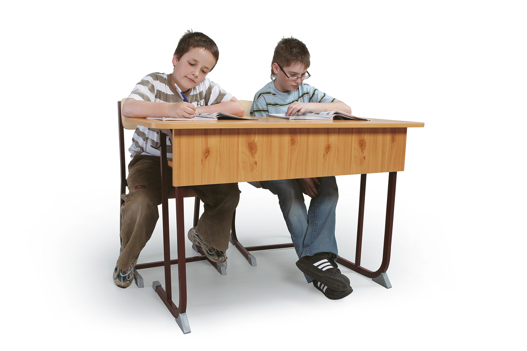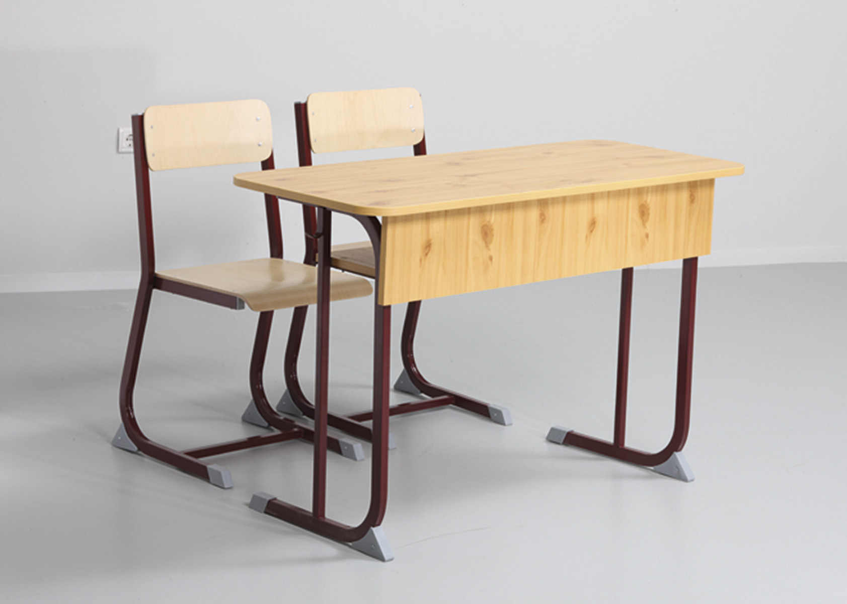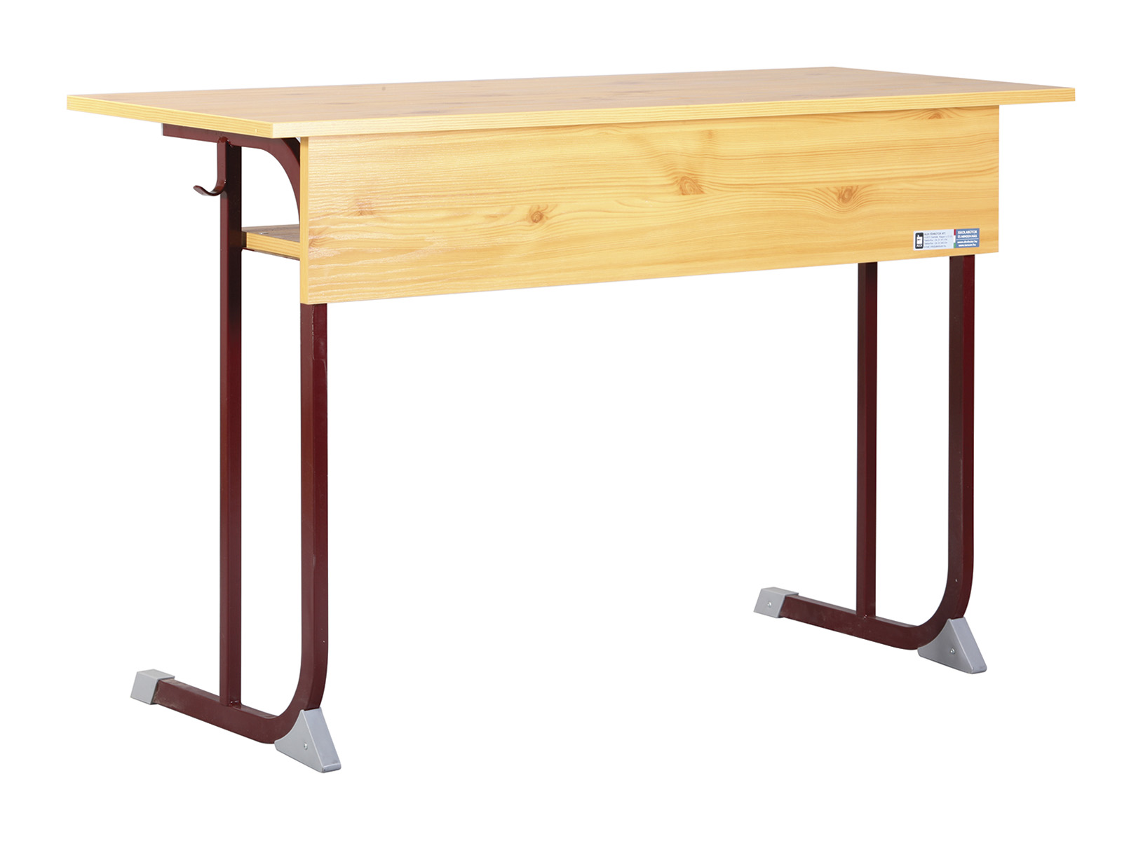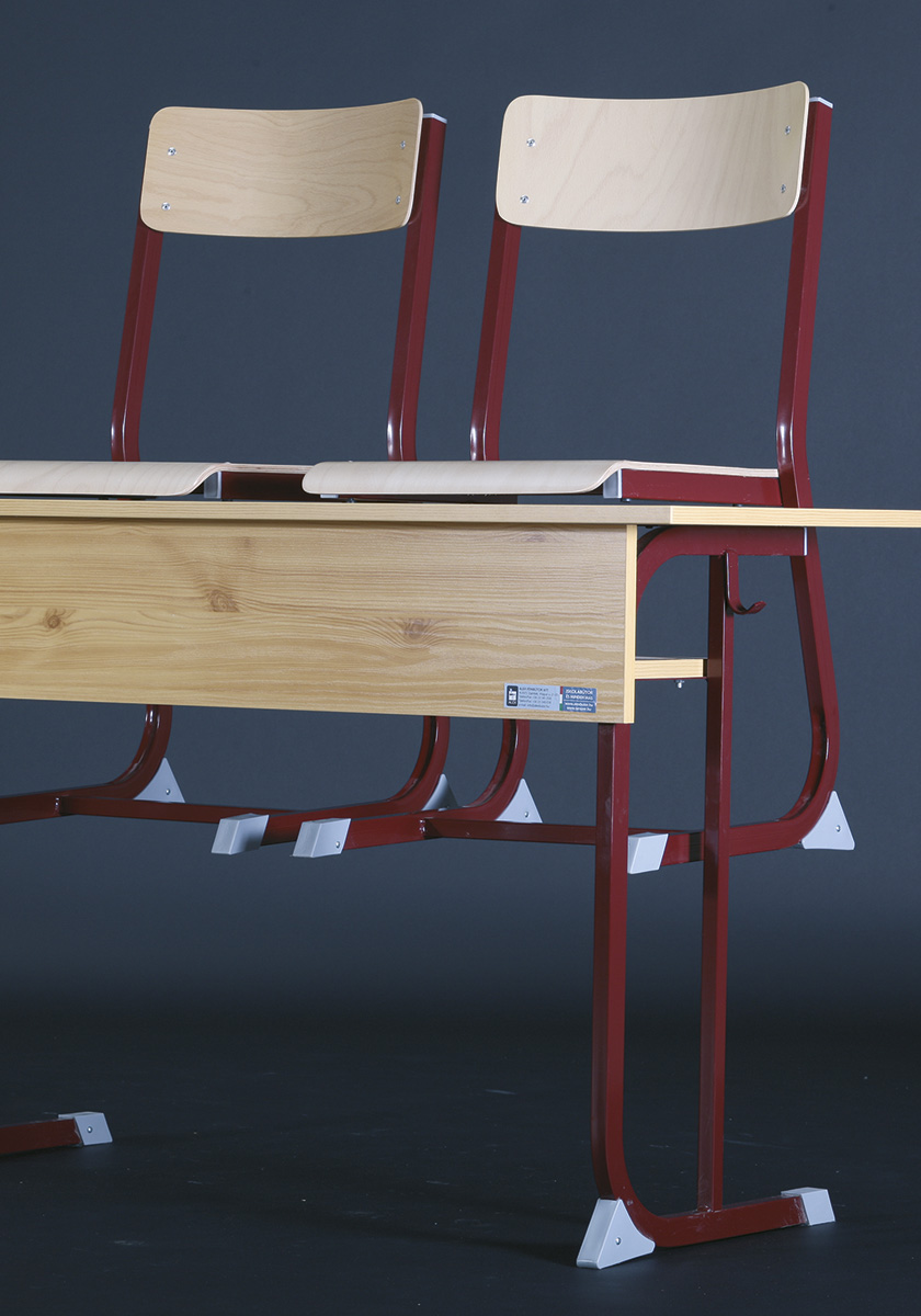 Derby 2 személyes tanulói asztal lábszerkezete 30×20-as zártszelvényből készülnek, melyeket csúszásgátló műanyag papucsokkal és sarokelemekkel láttunk el. Asztallap: 18 mm vastag faforgács lemez, két oldalon dekorit borítással (alsó részen fehér színű ellenhúzó dekorit) 2 mm vastag ABS élzárással sarkos. Homloklap és füzettartó polc: 18 mm vastag laminált bútorlapból 2 mm vastag ABS élzárással sarkos.