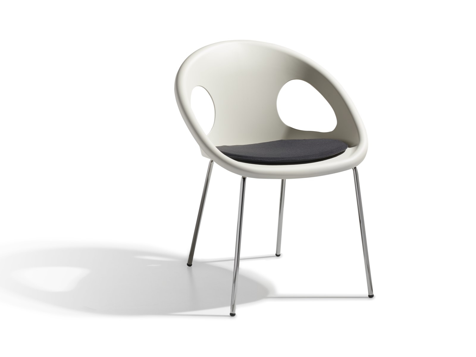 16 mm átmérőjű acélcsővázas, karfás szék, műanyag kagylóüléssel. Rakásolható. Ülőpárna elérhető hozzá.