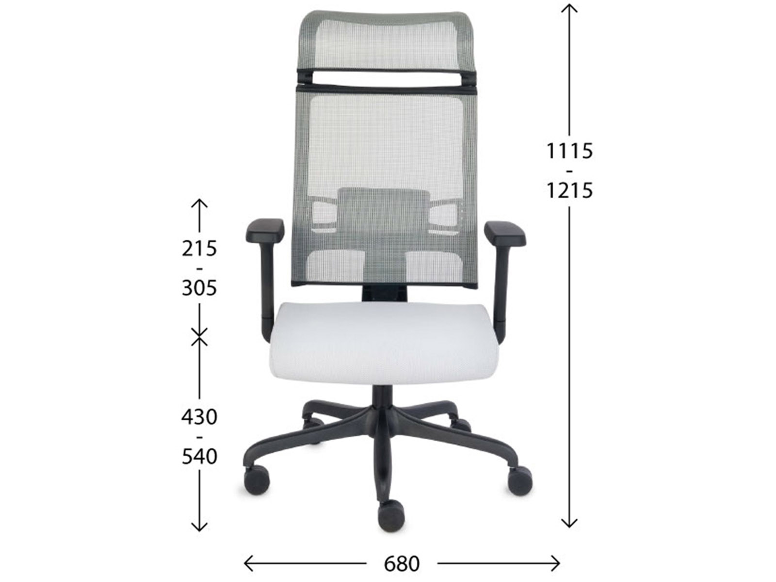 Széles ülőfelület és háttámla, állítható deréktámasz, karfa és fejtámla, szinkron mechanikával szerelt, ami igazodik a használó súlyához. A háttámla mesh hálós, légáteresztő szövettel rendelkezik, az ülőke szivacs sűrűsége 59 kg/m3 ami hosszú távon is rendkívül formatartó. 150 kg terhelhetőséggel. Három színben rendelhető: fekete, szürke, kék. Műanyag lábcsillaggal, görgős.