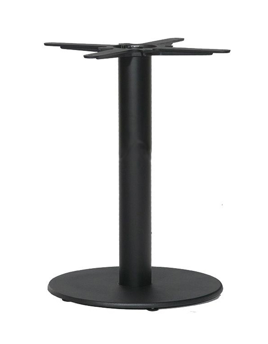 Központi oszlopos öntöttvas asztalbázis, 40 cm átmérőjű, szintezőtalpakkal ellátott alappal, kör keresztmetszetű oszloppal, d60 / d70 / d80 / 60×60 / 70×70 / 80×80 cm-es asztallapokhoz. Színe fekete, magassága 72 cm. Kültérre is ajánlott.