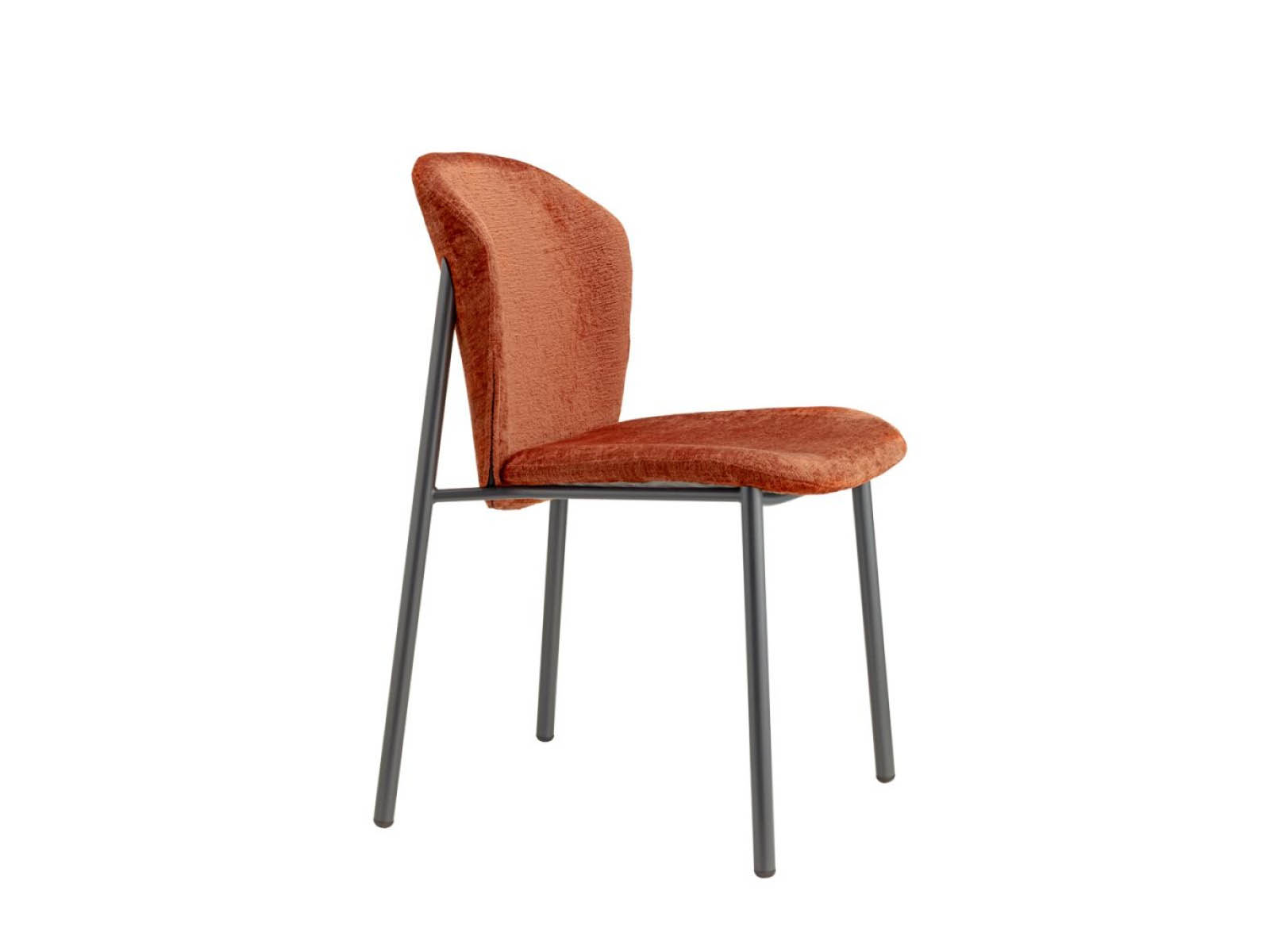 Fémvázas szék, 25 mm átmérőjű acélcső lábakkal. A az ülőfelület és háttámla magas kopásállóságú kárpittal van bevonva. Színenként 2 db-os egységekben rendelhető.