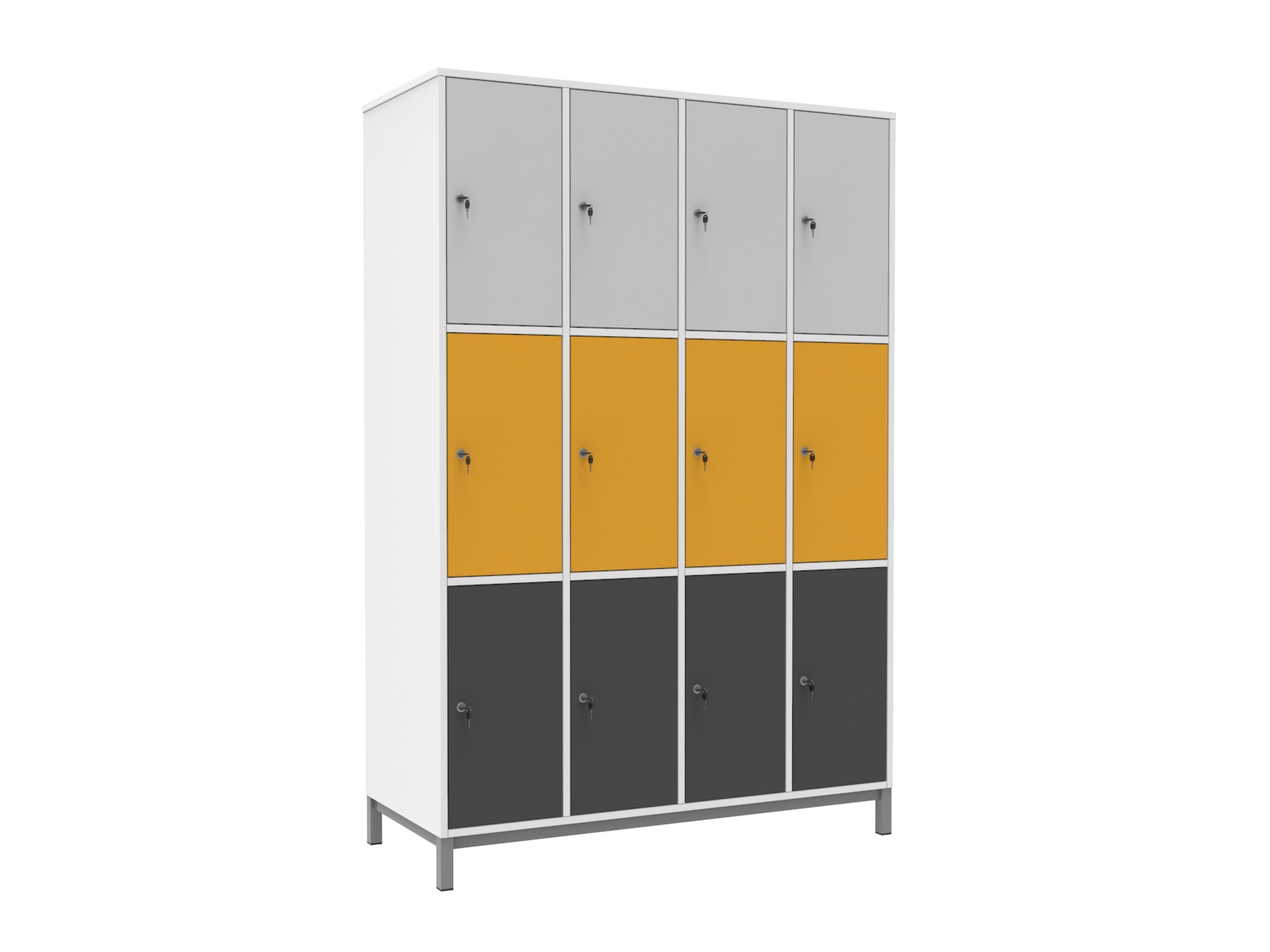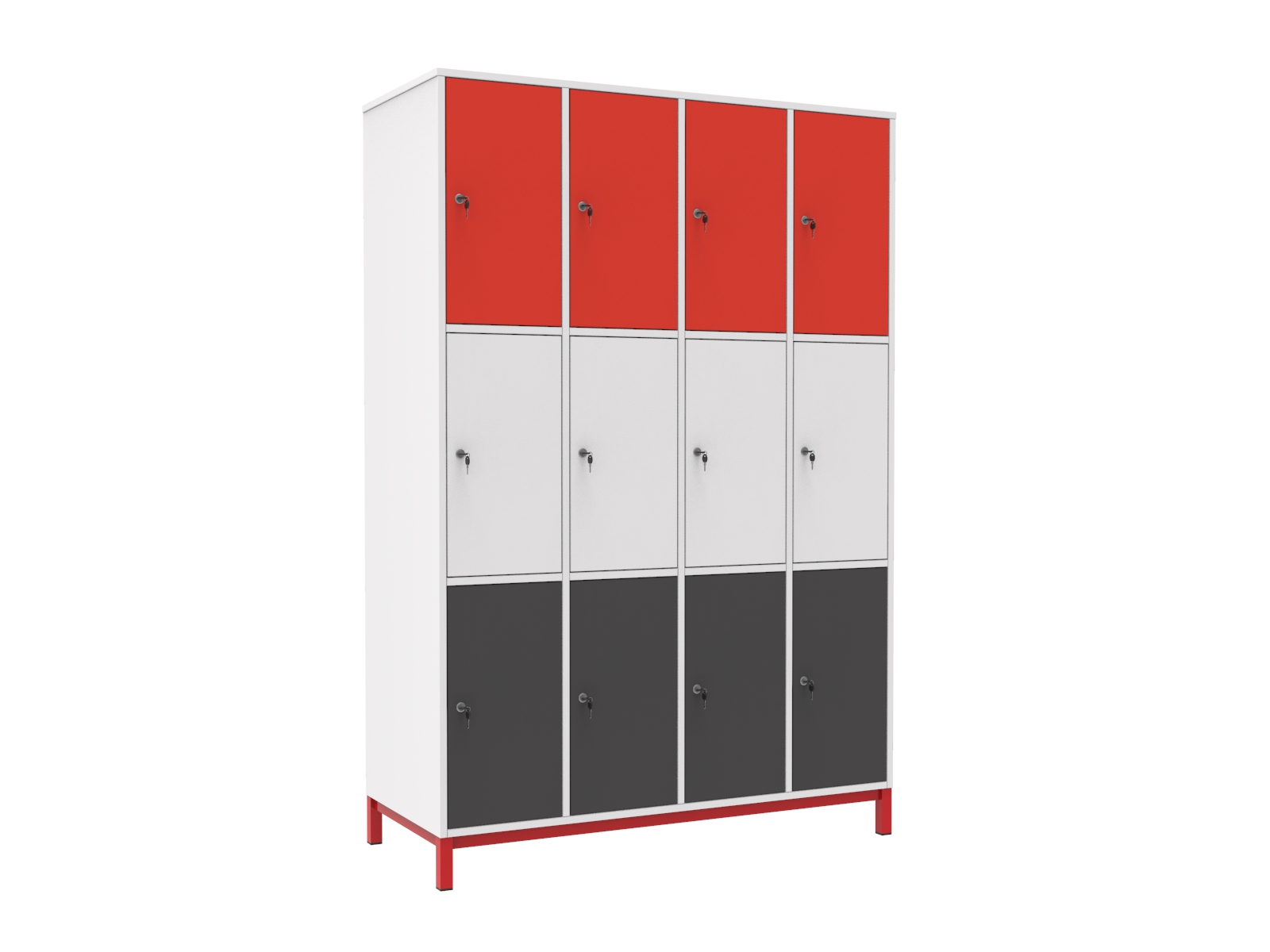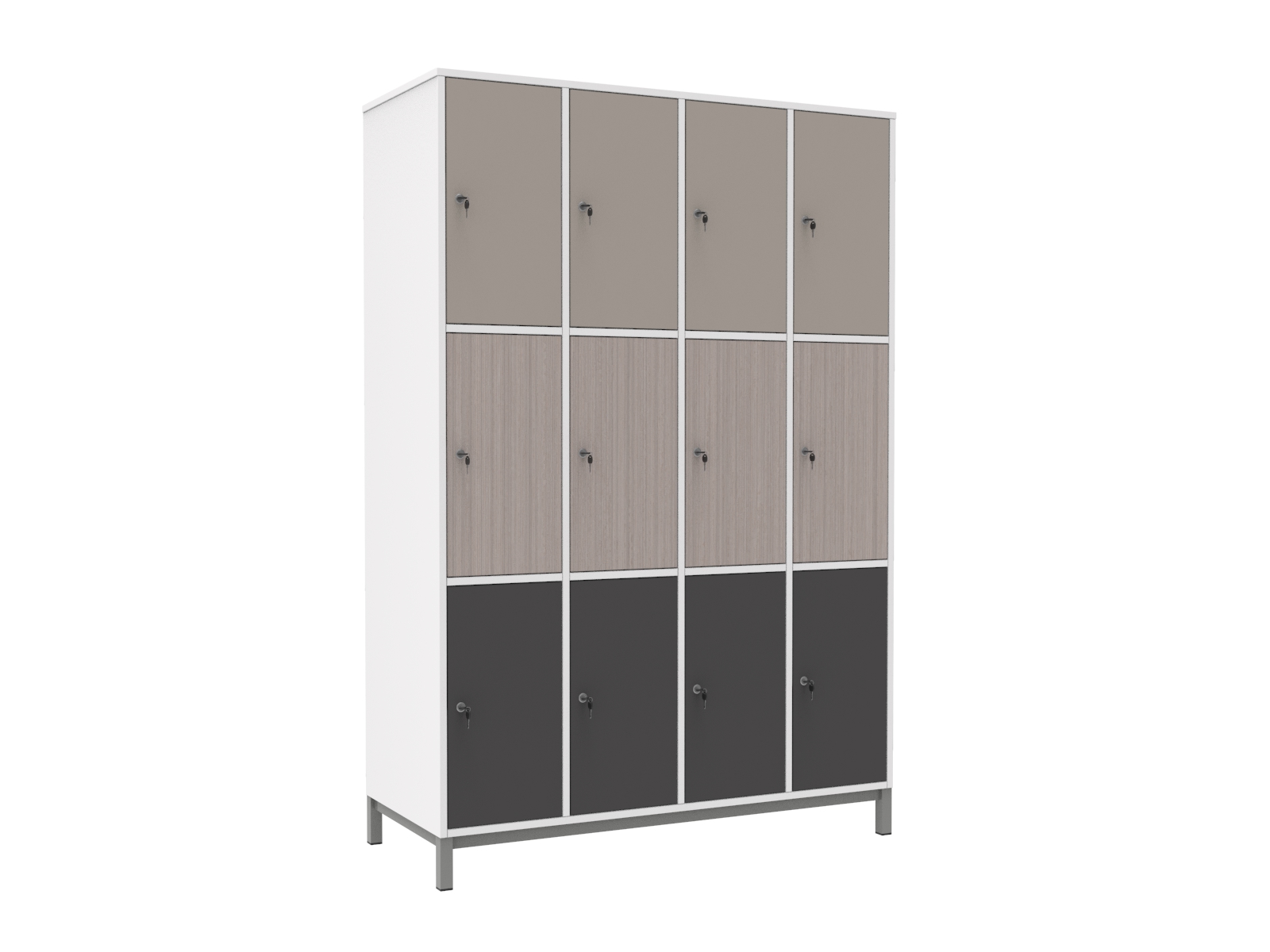 A értékmegőrzők rendkívül sokoldalúan felhasználhatók, a mérettől függően táska, cipő, munkaeszköz is tárolható a rekeszekben.A zárható szekrények biztonságos és praktikus lehetőséget kínálnak a személyes értékek tárolására. Telepítésük a funkció szerinti helyre könnyű és helytakarékos. Anyaga 18 mm-es laminált bútorlap 2 mm-es ABS élzárással. A rekeszek kétkulcsos biztonsági zárral szereltek. A hátlap tömör bútorlapból készül, ami rendkívül stabillá és biztonségossá teszi a szekrényt. A vázszerkezet elektrosztatikus porszórással festett zártszelvény keretből és 30×30 mm-es zártszelvény lábakból áll, szintezhető lábdugóval. Rekesz mérete: 27,6x54x48 cm