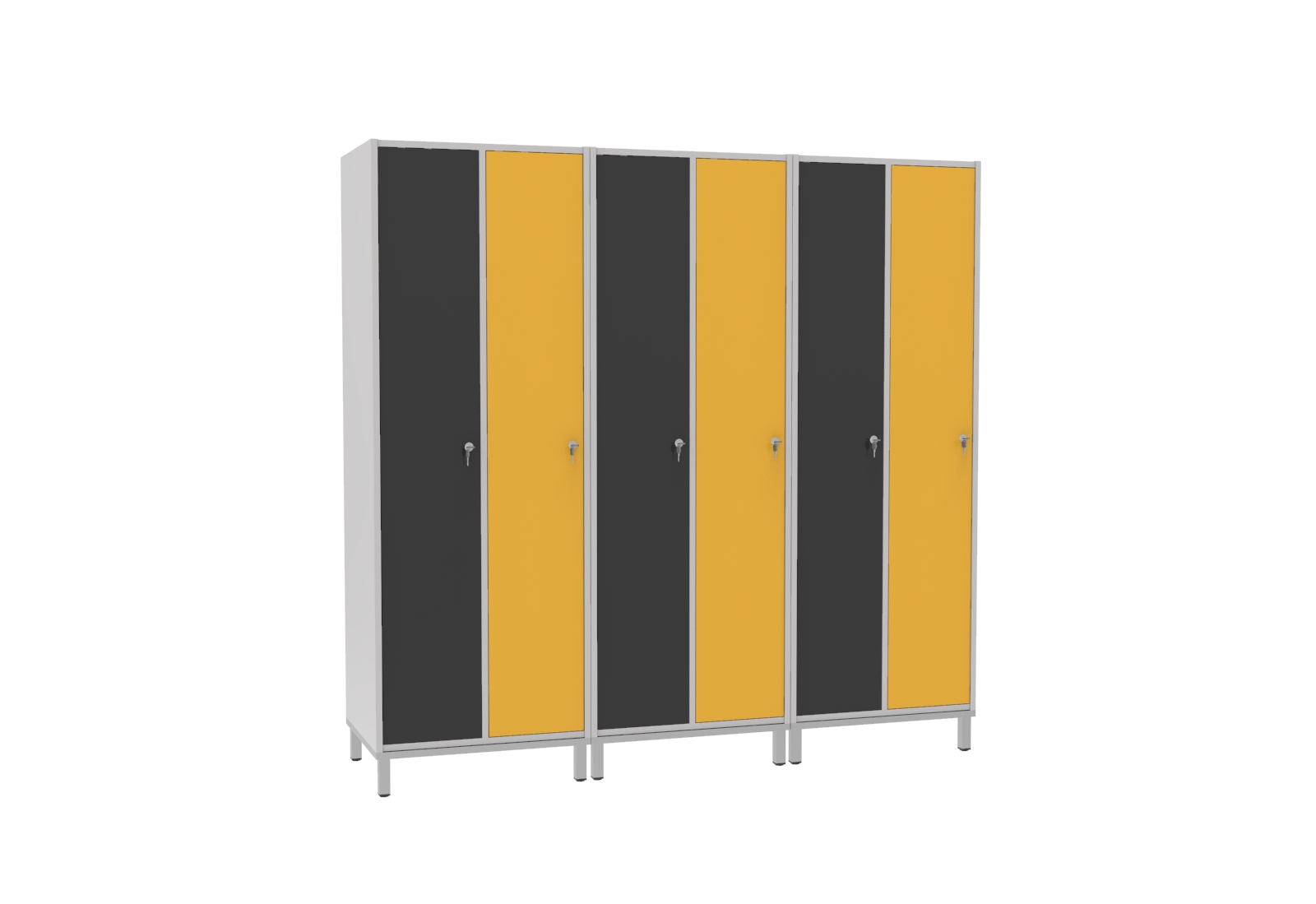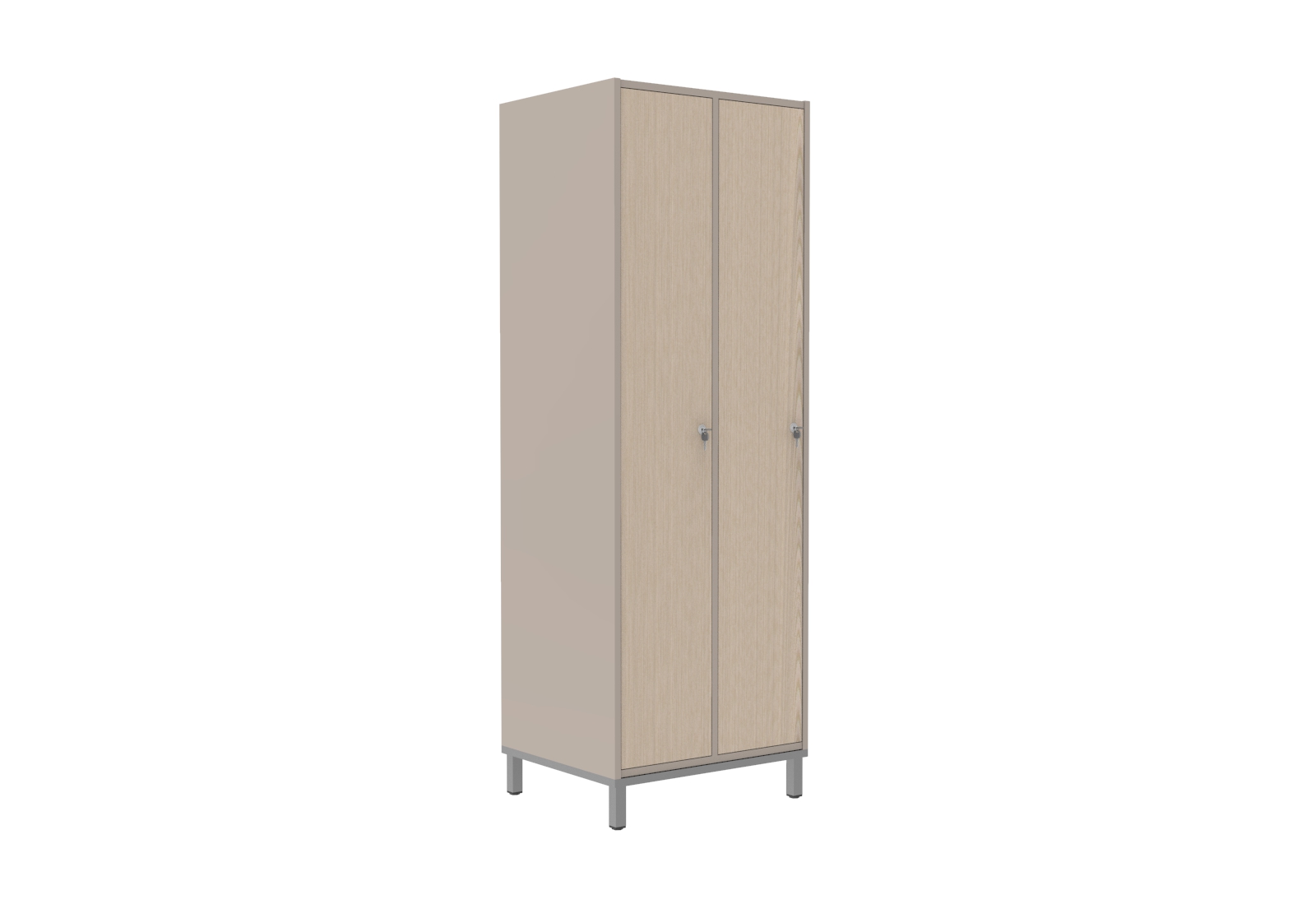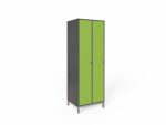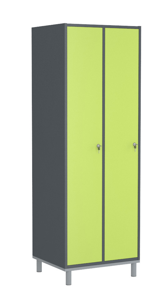 Praktikus és kedvező árú bútorlapból készült öltözőszekrényeink hosszúajtós változata kényelmes megoldás, ahol a teljes magasság rendelkezésre áll a hosszabb ruhák és kiegészítők tárolására egyaránt. A bútorlap felület meleg, komfortos érzetet nyújt használói számára. Az ajtó és a korpusz 18 mm vastag laminált bútorlapból készül, ABS élzárással. A hátfal HDF lemezből van. A lábtartó keret 40×20 mm-es zártszelvényből, míg a lábak 30×30 mm-es zártszelvényből készülnek. A lábak végén szintezhető dugó van a padló egyenetlenségeinek kiküszöbölésére. Alapfelszereltsége: ruhaakasztó rúd ruhakampóval, két kulcsos biztonsági zár, hátoldali szellőztető, kalaptartó polc.