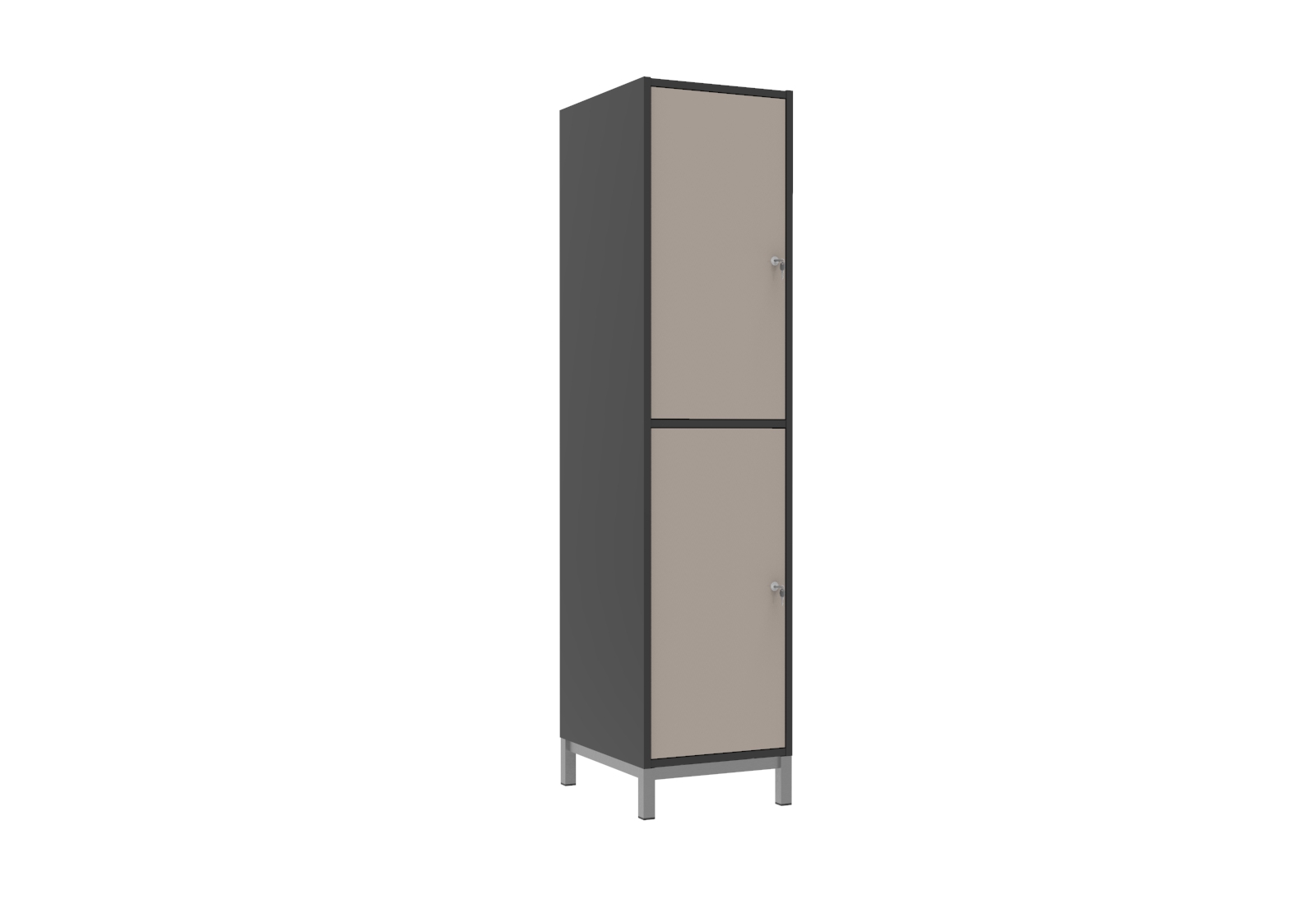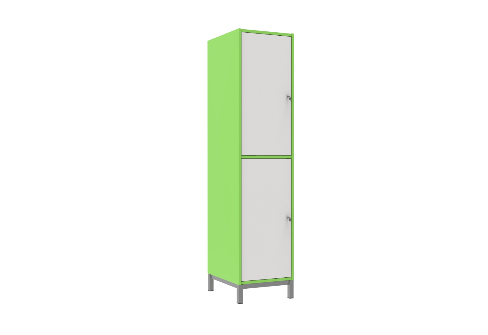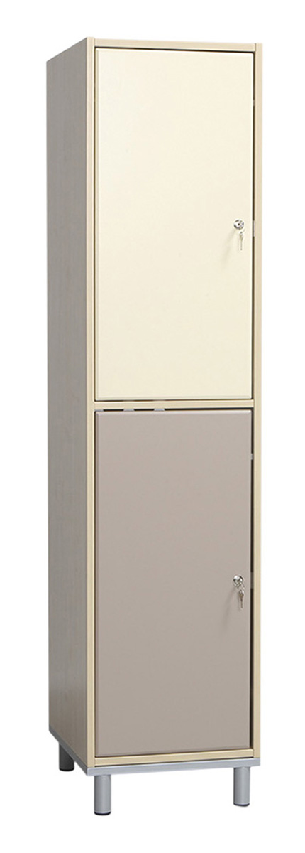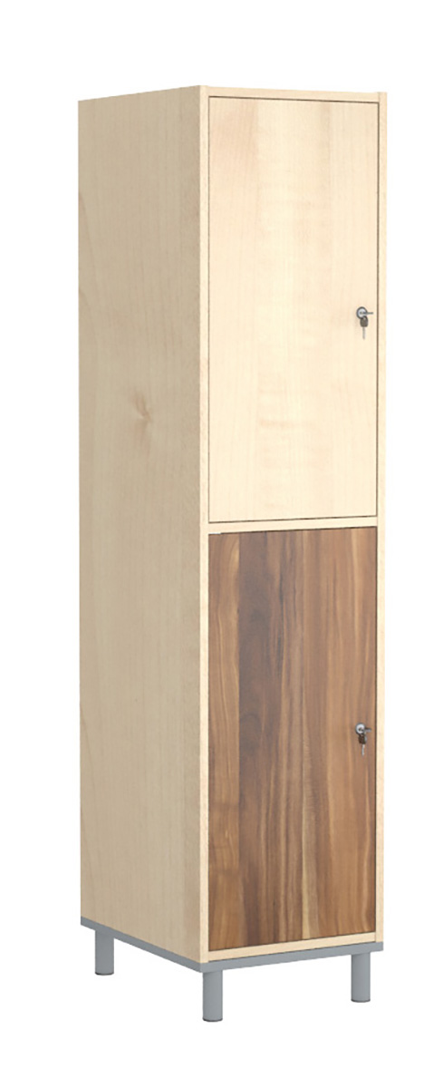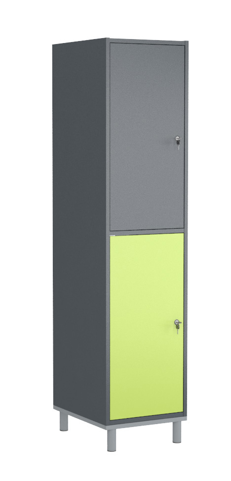 Praktikus és kedvező árú bútorlapos öltözőszekrényeink rövidajtós változata ideális, ha az öltözőben kevés a hely. Oktatási intézmények, edzőtermek és uszodák is előszeretettel választják. A bútorlap felület meleg érzetet nyújt. A 40 cm-es fakkszélesség még komfortosabb. Az ajtó és a korpusz 18 mm vastag laminált bútorlapból készül, ABS élzárással. A hátfal HDF lemezből van. A lábtartó keret 40×20 mm-es zártszelvényből, míg a lábak 30×30 mm-es zártszelvényből készülnek. A lábak végén szintezhető dugó van a padló egyenetlenségeinek kiküszöbölésére. A Fitt öltözőszekrények alapfelszereltsége: ruhaakasztó rúd ruhakampóval, két kulcsos biztonsági zár.