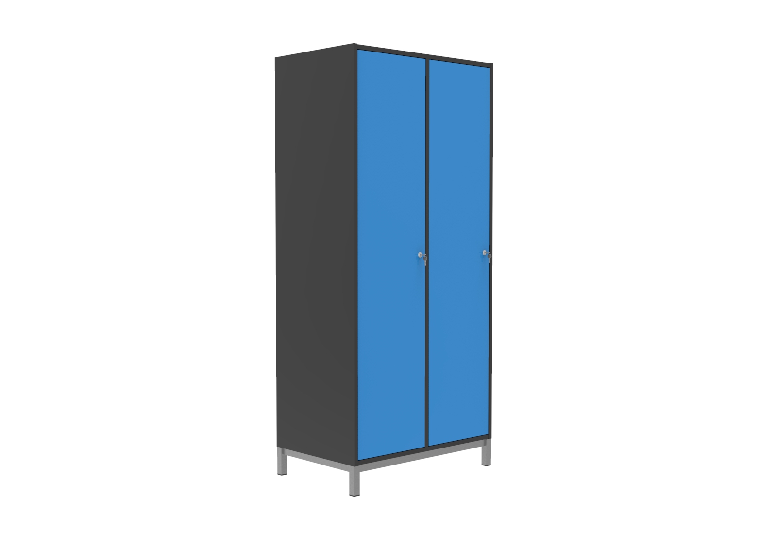 Praktikus és kedvező árú bútorlapból készült öltözőszekrényeink hosszúajtós változata kényelmes megoldás, ahol a teljes magasság rendelkezésre áll a hosszabb ruhák és kiegészítők tárolására egyaránt. A 40 cm-es fakkszélesség még komfortosabb. A bútorlap felület meleg érzetet nyújt használói számára. Az ajtó és a korpusz 18 mm vastag laminált bútorlapból készül, ABS élzárással. A hátfal HDF lemezből van. A lábtartó keret 40×20 mm-es zártszelvényből, míg a lábak 30×30 mm-es zártszelvényből készülnek. A lábak végén szintezhető dugó van a padló egyenetlenségeinek kiküszöbölésére. Alapfelszereltsége: ruhaakasztó rúd ruhakampóval, két kulcsos biztonsági zár, hátoldali szellőztető, kalaptartó polc.