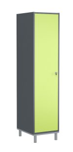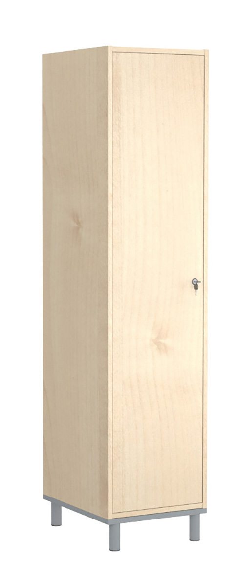 Praktikus és kedvező árú bútorlapból készült öltözőszekrényeink hosszúajtós változata kényelmes megoldás, ahol a teljes magasság rendelkezésre áll a hosszabb ruhák és kiegészítők tárolására egyaránt. A 40 cm-es fakkszélesség még komfortosabb. A bútorlap felület meleg érzetet nyújt használói számára. Az ajtó és a korpusz 18 mm vastag laminált bútorlapból készül, ABS élzárással. A hátfal HDF lemezből van. A lábtartó keret 40×20 mm-es zártszelvényből, míg a lábak 30×30 mm-es zártszelvényből készülnek. A lábak végén szintezhető dugó van a padló egyenetlenségeinek kiküszöbölésére. Alapfelszereltsége: ruhaakasztó rúd ruhakampóval, két kulcsos biztonsági zár, hátoldali szellőztető, kalaptartó polc.