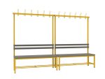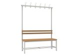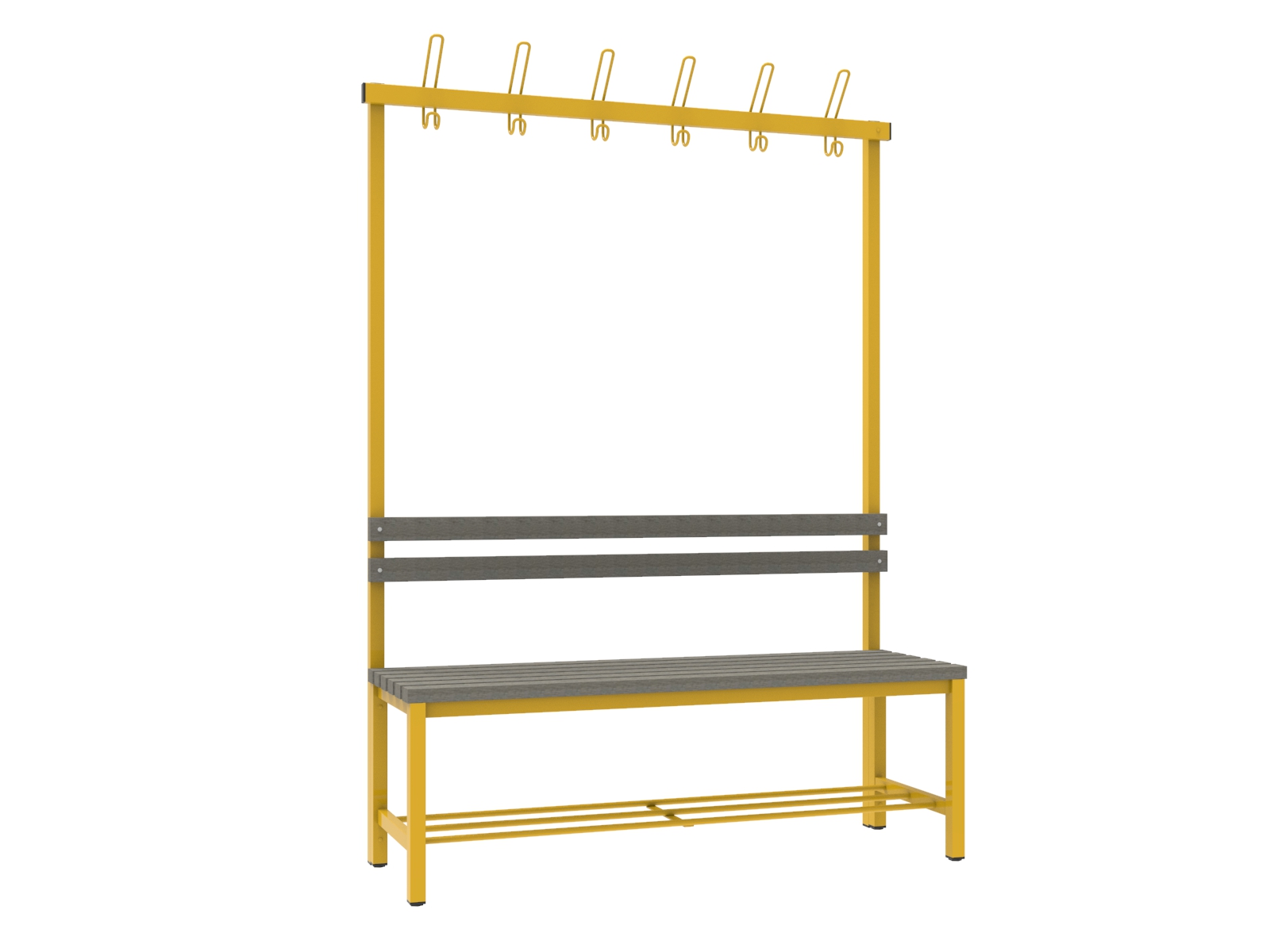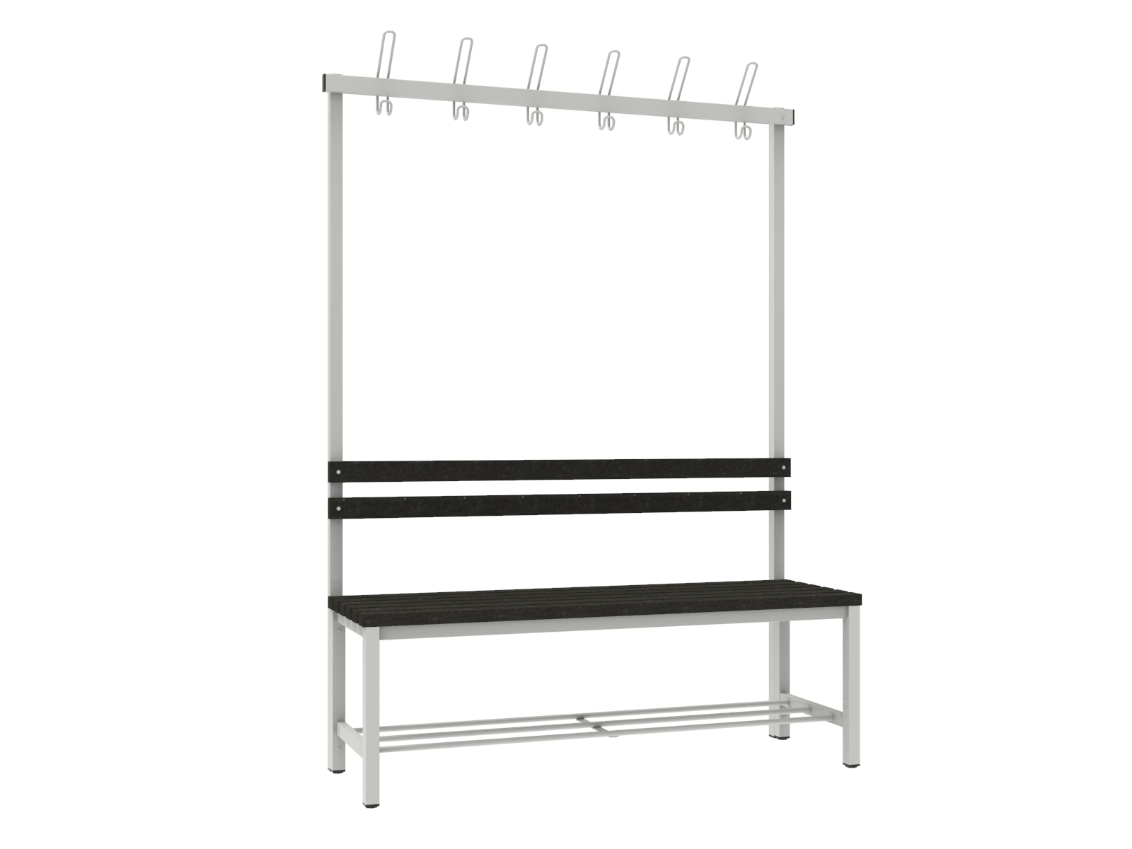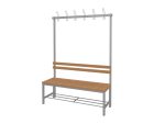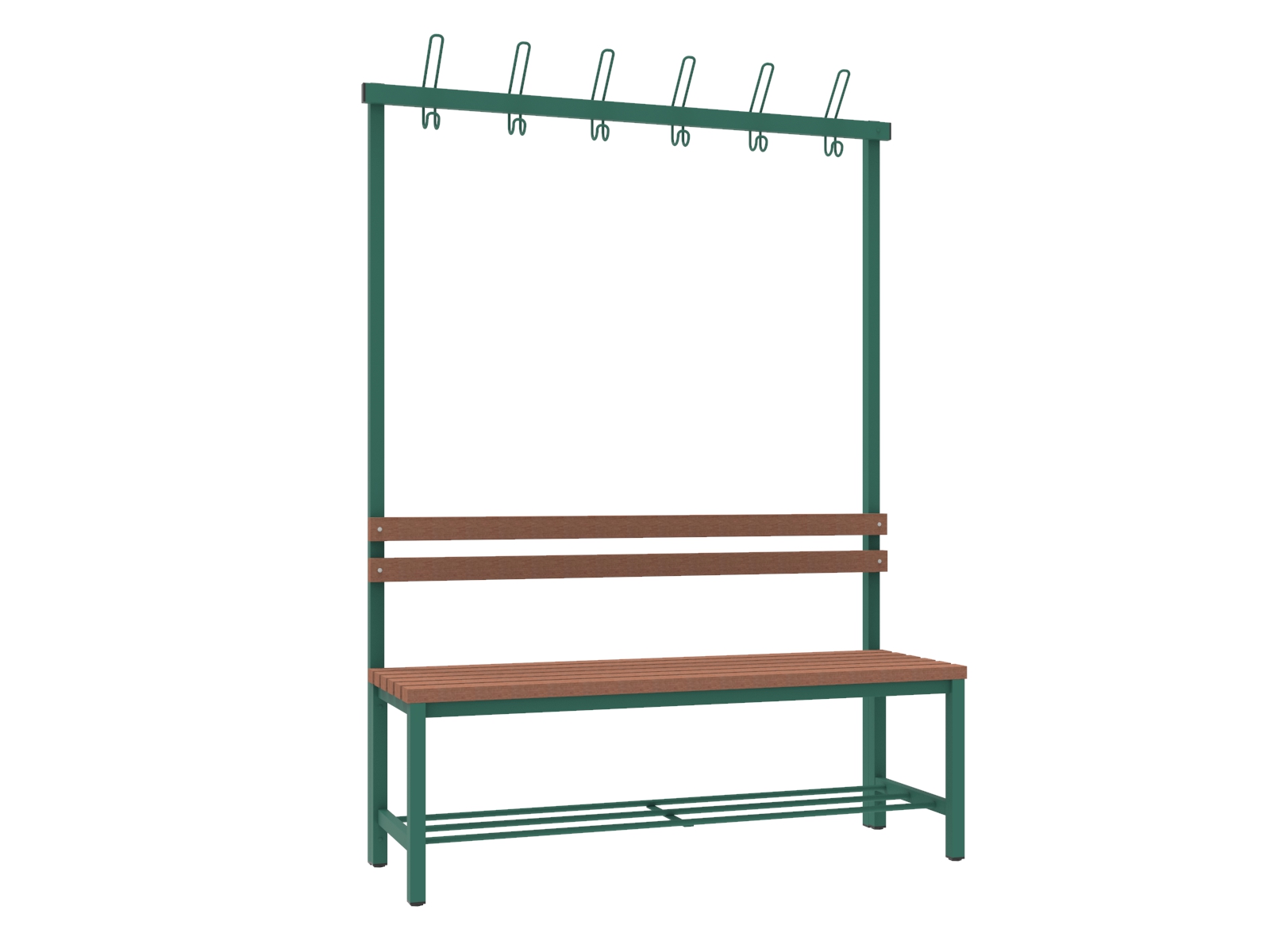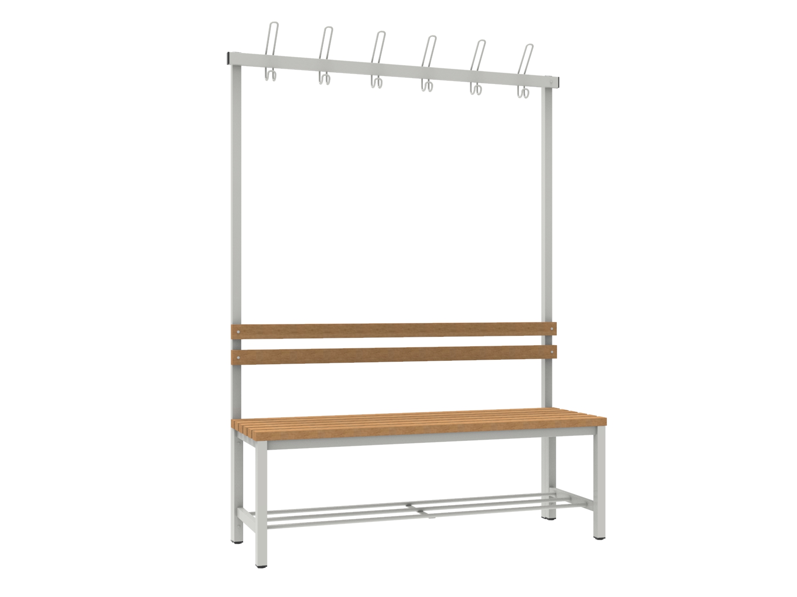 A vázszerkezet elektosztatikus porszórással felületkezelt 30×30 mm-es zártszelvényből készül 6 db rugalmas ruhaakasztó kampóval. A cipőtartó rács 13 mm-es acélcső pálcákból áll. A szintezhető lábdugók segítenek kiküszöbölni a padló egyenetlenségeit. Az ülőfelület karbantartást nem igénylő WPC lécekből készül. A WPC lécek (Wood Plastic Composite) fa–műanyag kompozitból készülnek, amely faforgácsból és különböző hőre lágyuló műanyagokból állnak. A kompozit fatartalma 60%. Ellenállnak a korróziónak és a rothadásnak is. Rendkívül tartósak és ellenállnak a vízben található, a fát megtámadó organizmusoknak is.