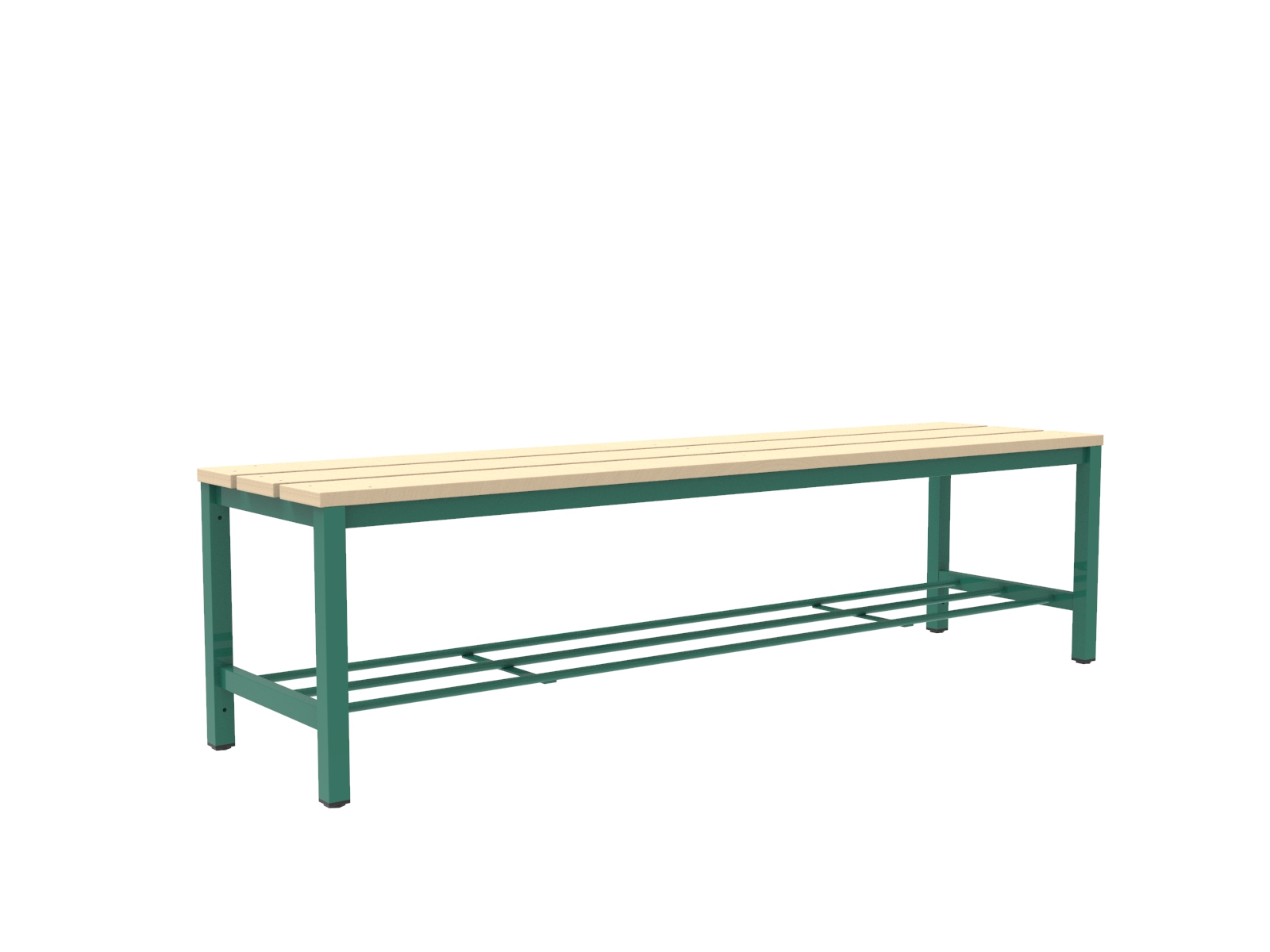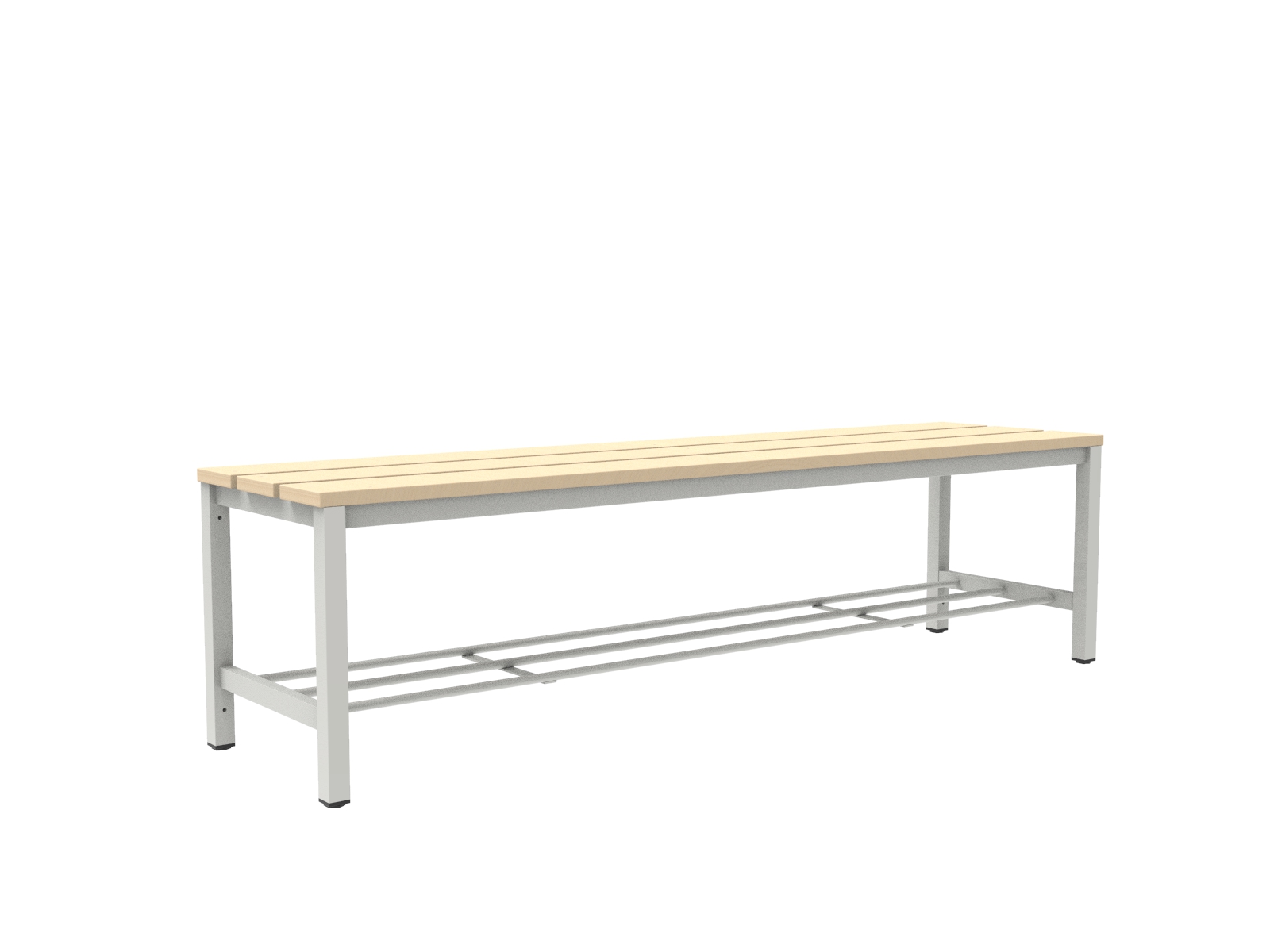 A vázszerkezet elektosztatikus porszórással felületkezelt 30×30 mm-es zártszelvényből készül. A cipőtartó rács 13 mm-es acélcső pálcákból áll. A szintezhető lábdugók segítenek kiküszöbölni a padló egyenetlenségeit. Az ülőfelület lakkozott I. osztályú borovi fenyő lécekből készül.