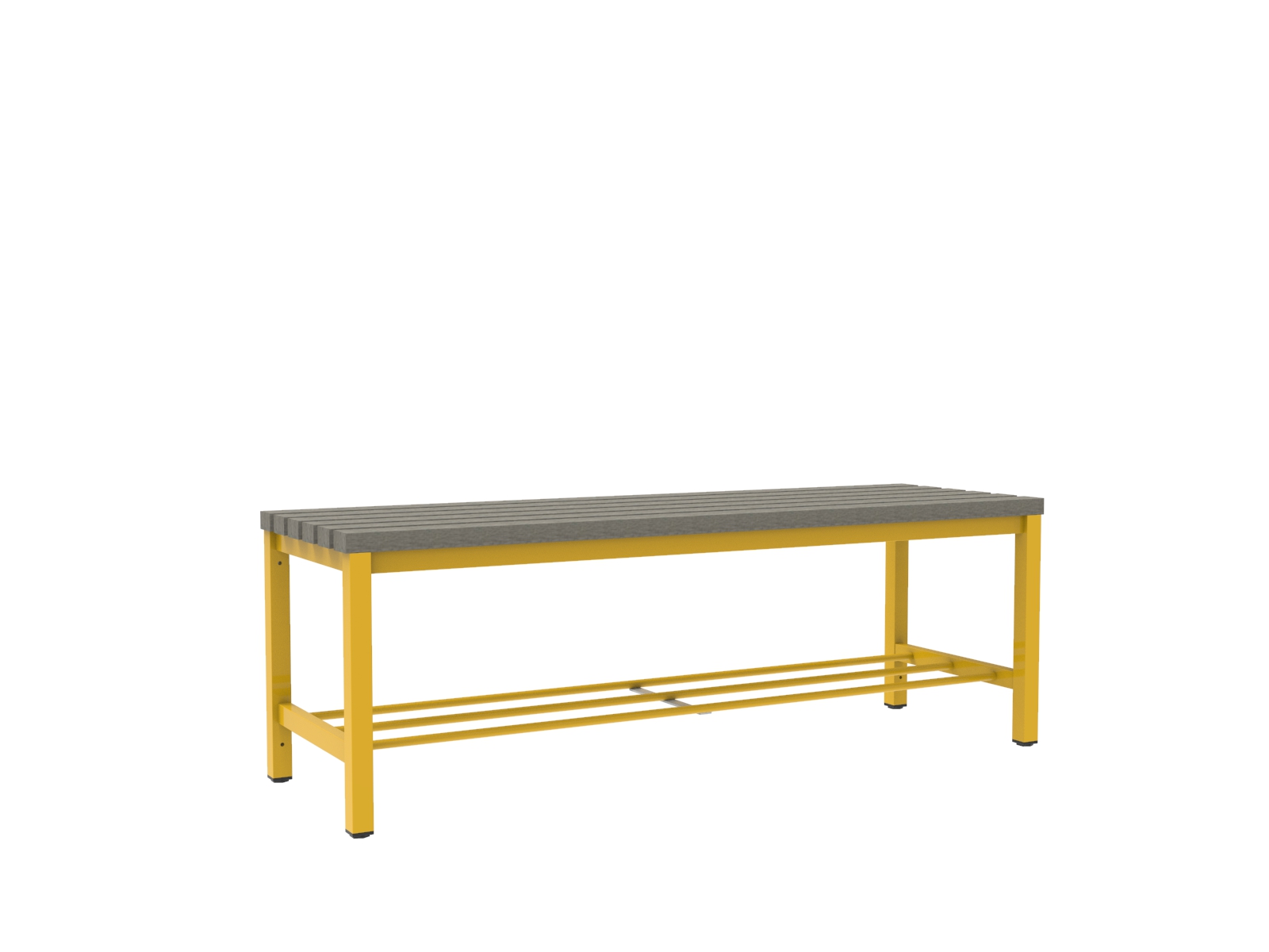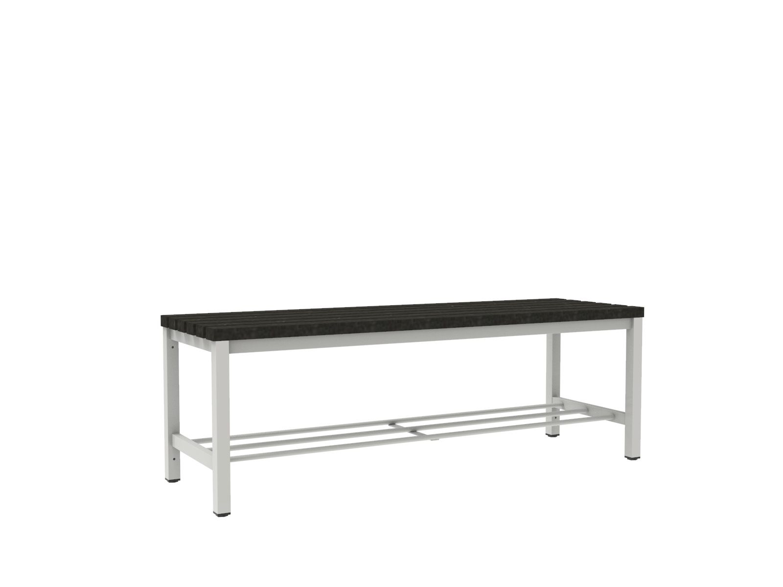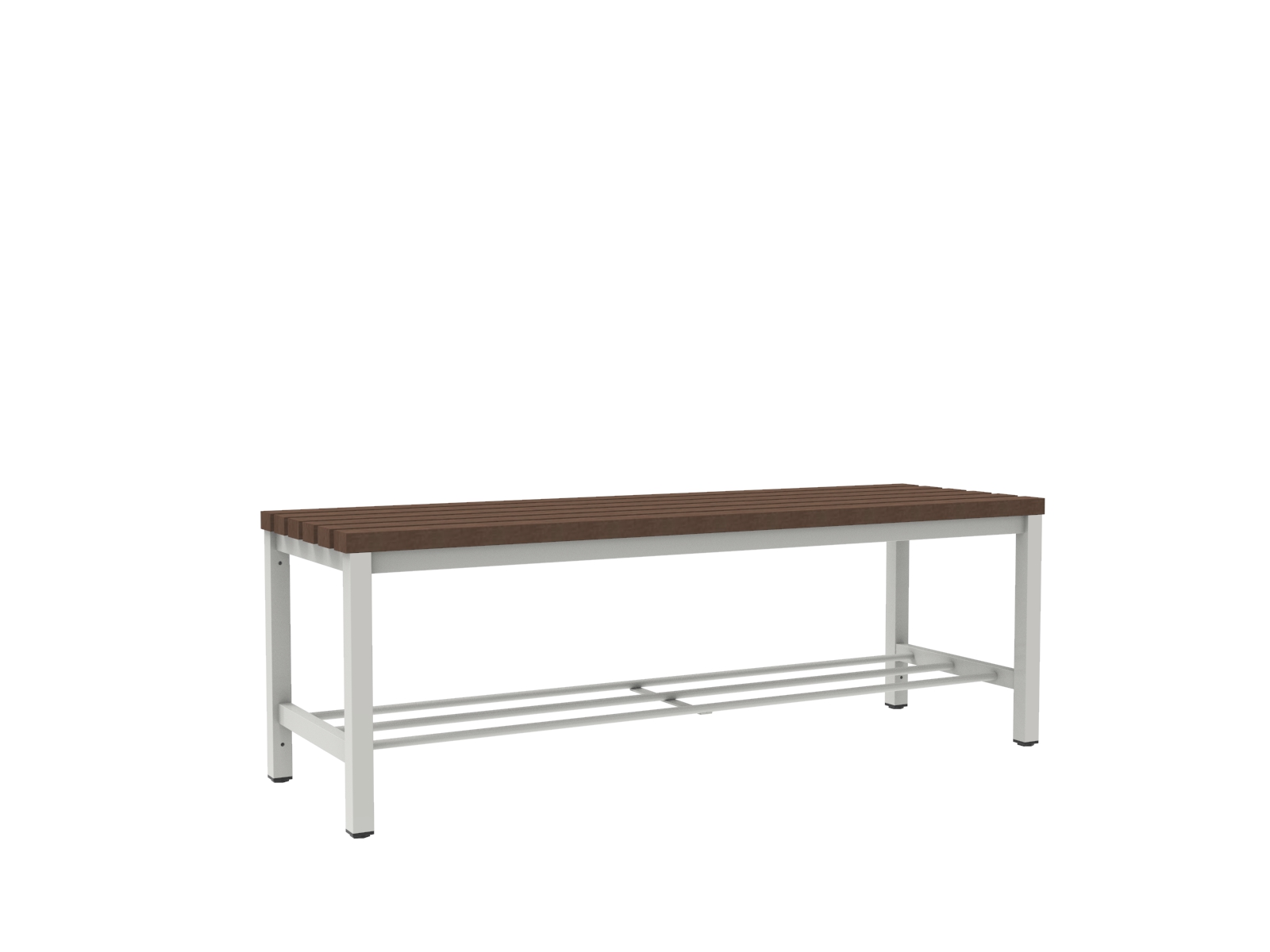 A vázszerkezet elektosztatikus porszórással felületkezelt 30×30 mm-es zártszelvényből készül szintezhető lábdugóval. A cipőtartó rács 13 mm-es acélcső pálcákból áll. Az ülőfelület karbantartást nem igénylő WPC lécekből készül. A WPC lécek (Wood Plastic Composite) fa–műanyag kompozitból készülnek, amely faforgácsból és különböző hőre lágyuló műanyagokból állnak. A kompozit fatartalma 60%. Ellenállnak a korróziónak és a rothadásnak is. Rendkívül tartósak és ellenállnak a vízben található, a fát megtámadó organizmusoknak is.