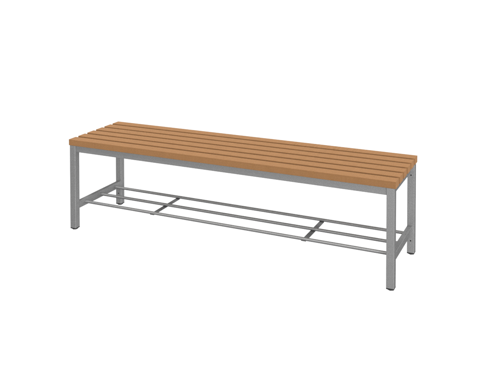 A vázszerkezet elektosztatikus porszórással felületkezelt 30×30 mm-es zártszelvényből készül szintezhető lábdugóval. A cipőtartó rács 13 mm-es acélcső pálcákból áll. Az ülőfelület karbantartást nem igénylő WPC lécekből készül. A WPC lécek (Wood Plastic Composite) fa–műanyag kompozitból készülnek, amely faforgácsból és különböző hőre lágyuló műanyagokból állnak. A kompozit fatartalma 60%. Ellenállnak a korróziónak és a rothadásnak is. Rendkívül tartósak és ellenállnak a vízben található, a fát megtámadó organizmusoknak is.