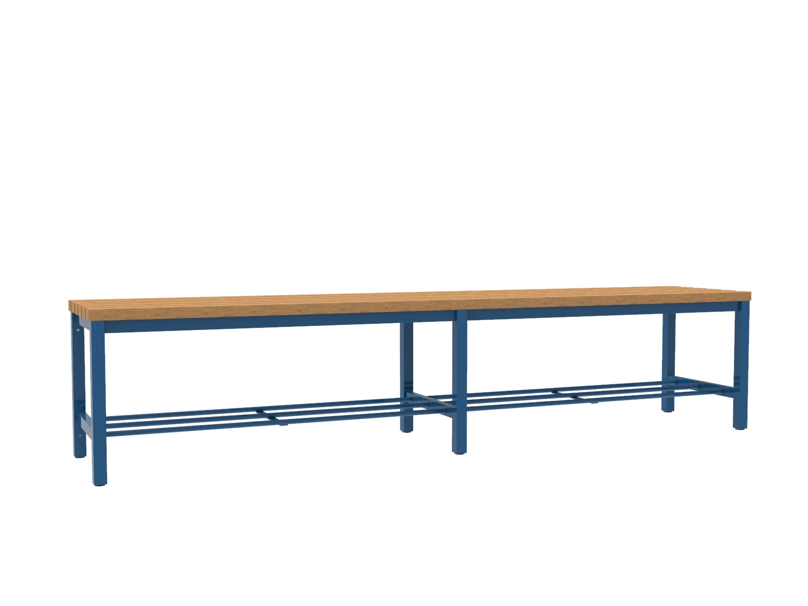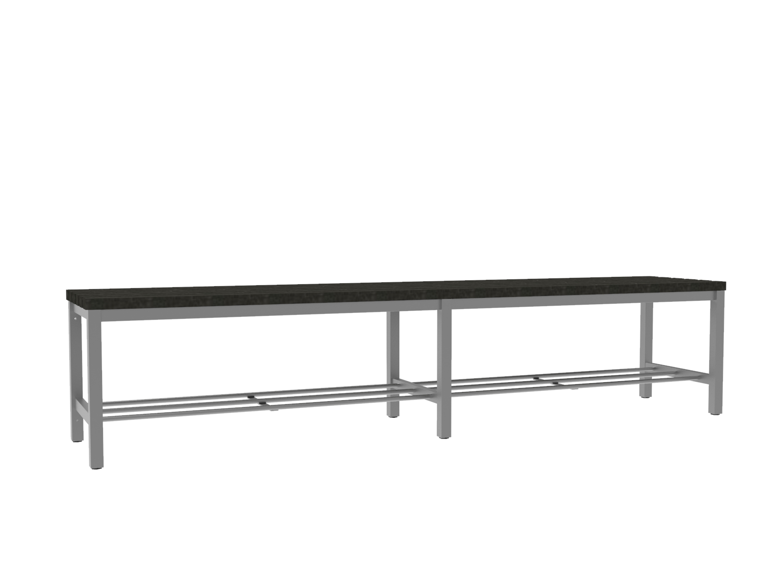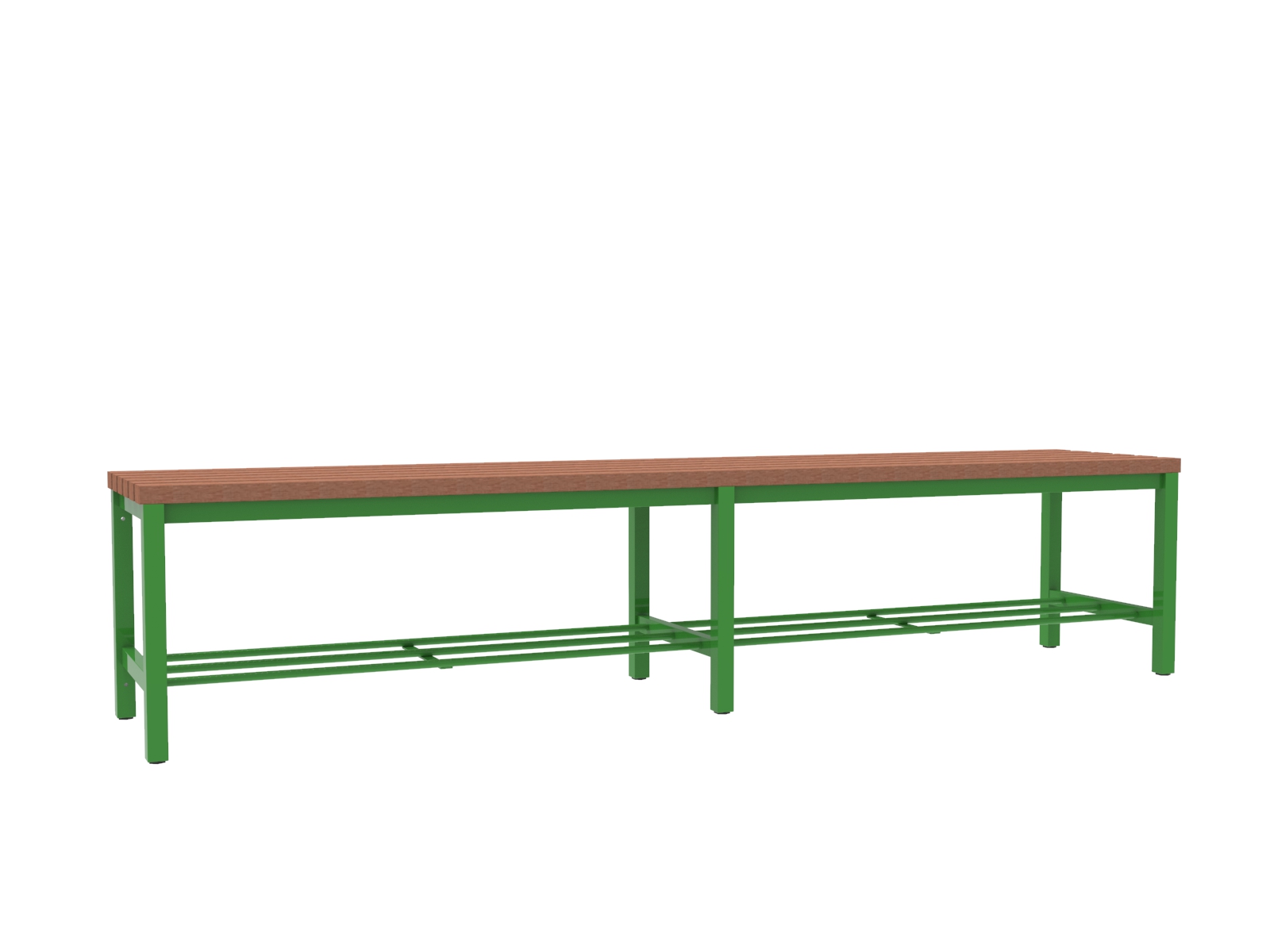 A vázszerkezet elektosztatikus porszórással felületkezelt 30×30 mm-es zártszelvényből készül szintezhető lábdugóval. A cipőtartó rács 13 mm-es acélcső pálcákból áll. Az ülőfelület karbantartást nem igénylő WPC lécekből készül. A WPC lécek (Wood Plastic Composite) fa–műanyag kompozitból készülnek, amely faforgácsból és különböző hőre lágyuló műanyagokból állnak. A kompozit fatartalma 60%. Ellenállnak a korróziónak és a rothadásnak is. Rendkívül tartósak és ellenállnak a vízben található, a fát megtámadó organizmusoknak is.