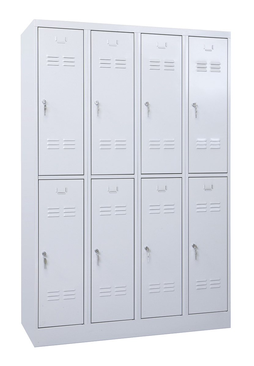A tartós, könnyen tisztítható fém szekrények rövidajtós változata ideális megoldás, ha kevés a hely a sport- vagy személyzeti öltözőben. A FittMet fém öltözőszekrény teljes felületén elektrosztatikus porszórással festett hajlított acéllemez korpusszal és ajtóval készül. Szoklis kivitelben. Alapfelszereltség: ruhaakasztó rúd ruhakampóval, kétkulcsos biztonsági zár, ajtón kopoltyúszerű szellőztetés, névcímke tartó.