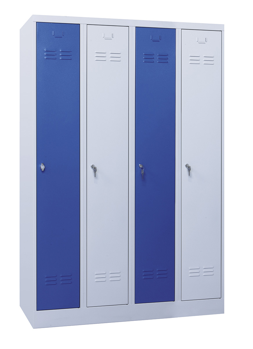 A tartós, könnyen tisztítható fém szekrények hosszúajtós változata kényelmes megoldás, ahol a teljes szekrény magasság rendelkezésre áll a pakolásra. Praktikus a hosszabb ruhaneműk gyűrődésmentes akasztásához, cipők, táskák rendszerezhető tárolásához, igény esetén színes ajtókkal. A FittMet fém öltözőszekrény teljes felületén elektrosztatikus porszórással festett hajlított acéllemez korpusszal és ajtóval készül. Szoklis kivitelben. Alapfelszereltség: ruhaakasztó rúd ruhakampóval, kétkulcsos biztonsági zár, ajtón kopoltyúszerű szellőztetés, névcímke tartó.