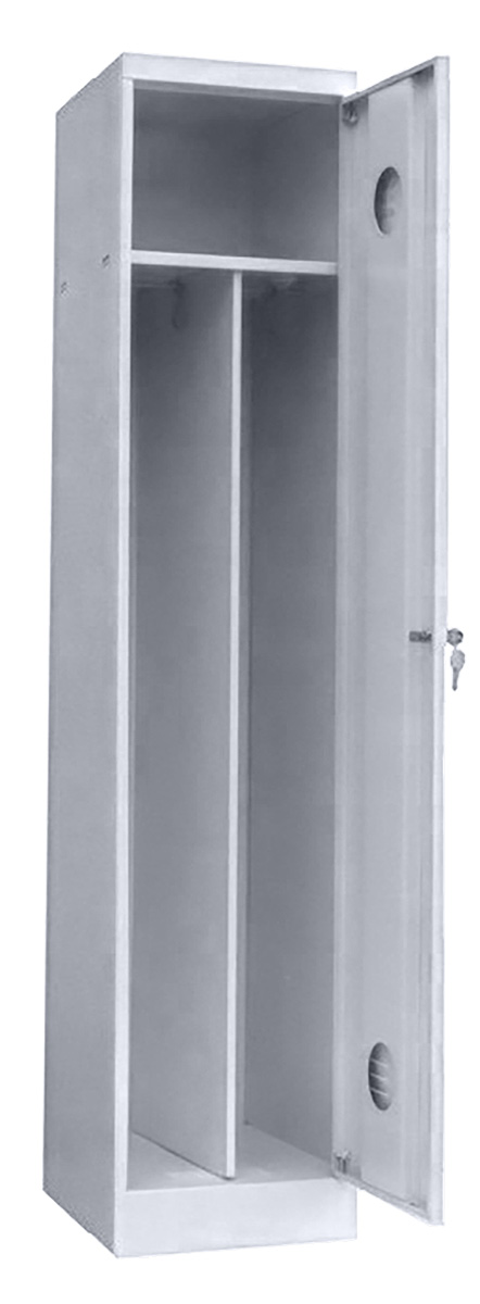 A FittMet fém öltözőszekrény teljes felületén elektrosztatikus porszórással festett hajlított acéllemez korpusszal és ajtóval készül. Szoklis kivitelben. A válaszfal lehetővé teszi a munkaruha és az utcai ruházat elkülönítését. Alapfelszereltség: ruhaakasztó rúd ruhakampóval, kétkulcsos biztonsági zár, ajtó, tető-és fenéklemezen kopoltyúszerű szellőztetés, névcímke tartó, kalaptartó polc.