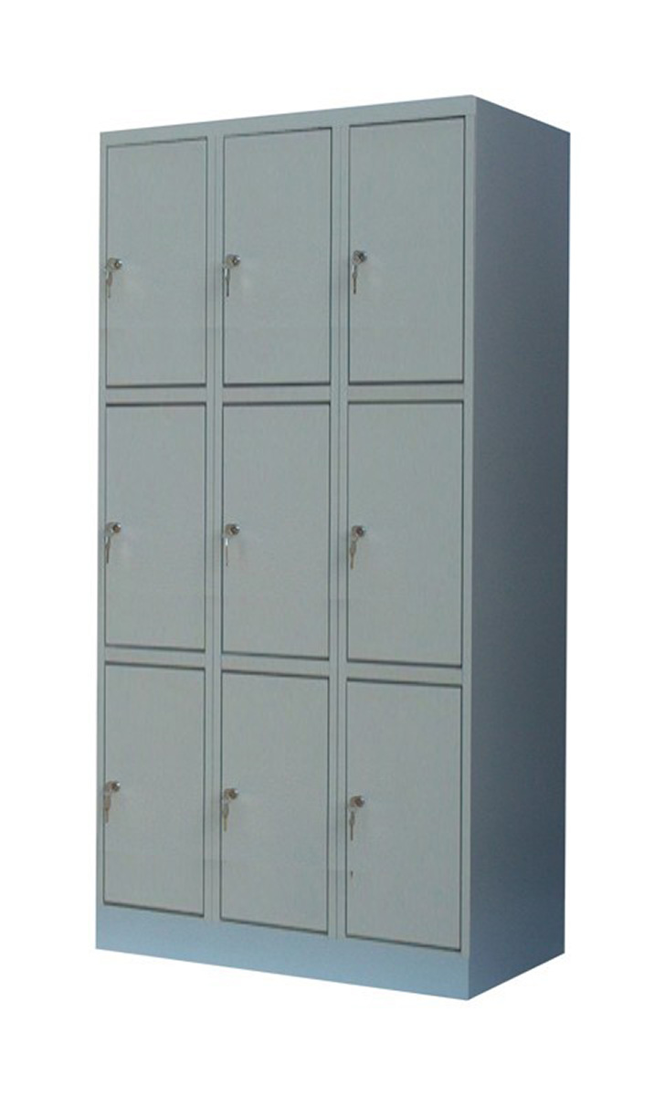 A zárható szekrények biztonságos és praktikus lehetőséget kínálnak a személyes értékek tárolására. Telepítésük a funkció szerinti helyre könnyű és helytakarékos. Anyaga elektrosztatikusan porszórt erős hegesztett acéllemez, kalapprofil merevítéses ajtókkal. A rekesz kétkulcsos biztonsági zárral ellátott. Rekesz mérete: 30x54x50 cm