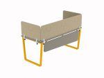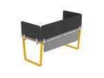 Különleges formájú, a Flynn irodai asztalokhoz tervezett kerekített sarkú lebegő homloklap. Az asztallaphoz két konzollal kerül rögzítésre, utólag is felszerelhető. Anyaga 18 mm vastag laminált faforgács lap 2 mm vastag ABS élzárással.