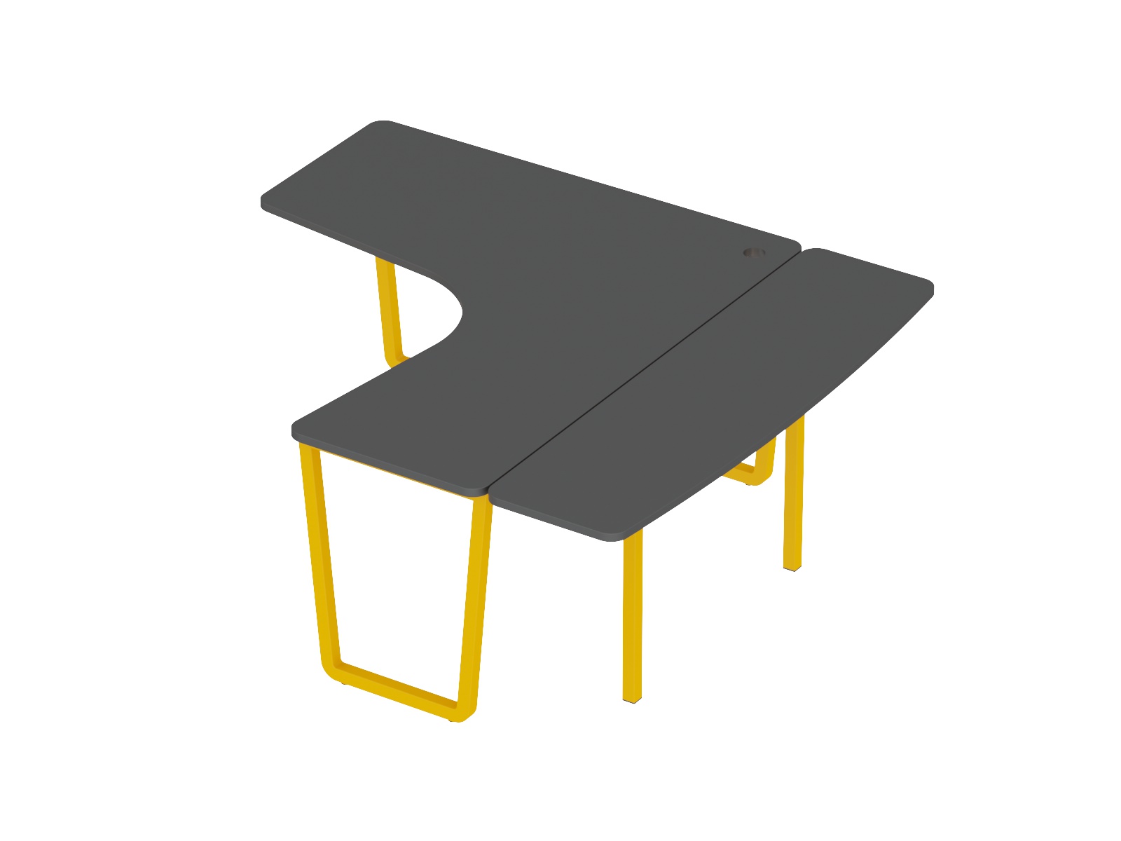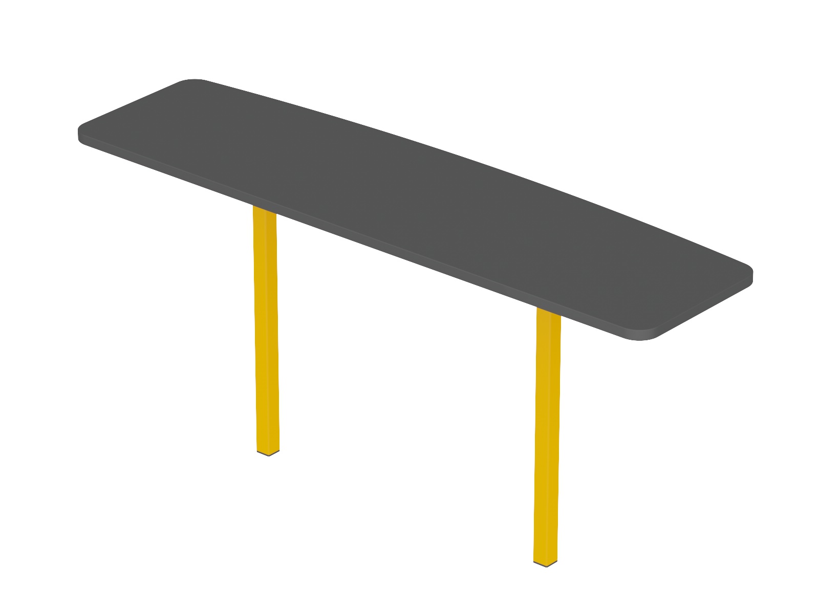 Különleges, íves formájú, a Flynn irodai asztalokhoz tervezett kerekített sarkú kiegészítő záróasztal, amivel megnövelhető az asztal mérete oldalirányban. Az asztallap 25 mm vastag laminált faforgács lap 2 mm-es ABS élzárással, elektrosztatikus porszórással felületkezelt 40×40 mm-es acél zártszelvény lábbal, szintezhető lábdugóval.