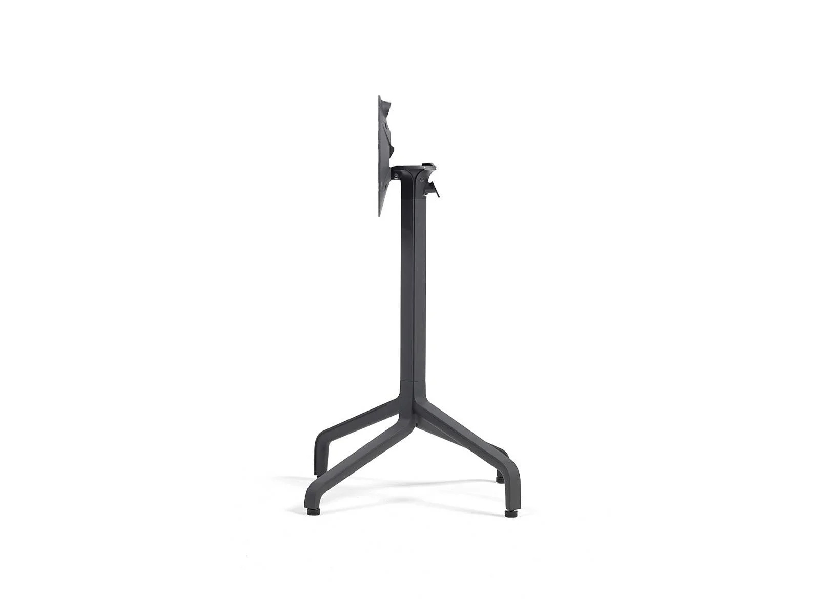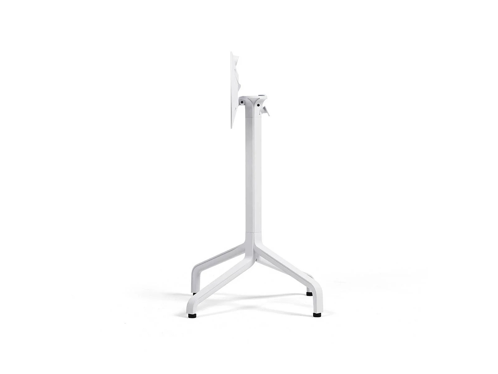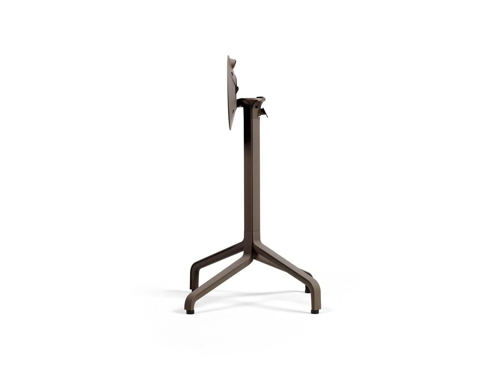 Központi oszlopos matt alumínium asztalbázis, szintezőlábakkal, lehajthatós kivitelben. Magassága 72 cm. Használható d60 / d70 / d80 / 60×60 / 70×70 / 80×80 cm-es asztallapokhoz. Felár ellenében kérhető kültéri kivitelben, állítva rakásolható.