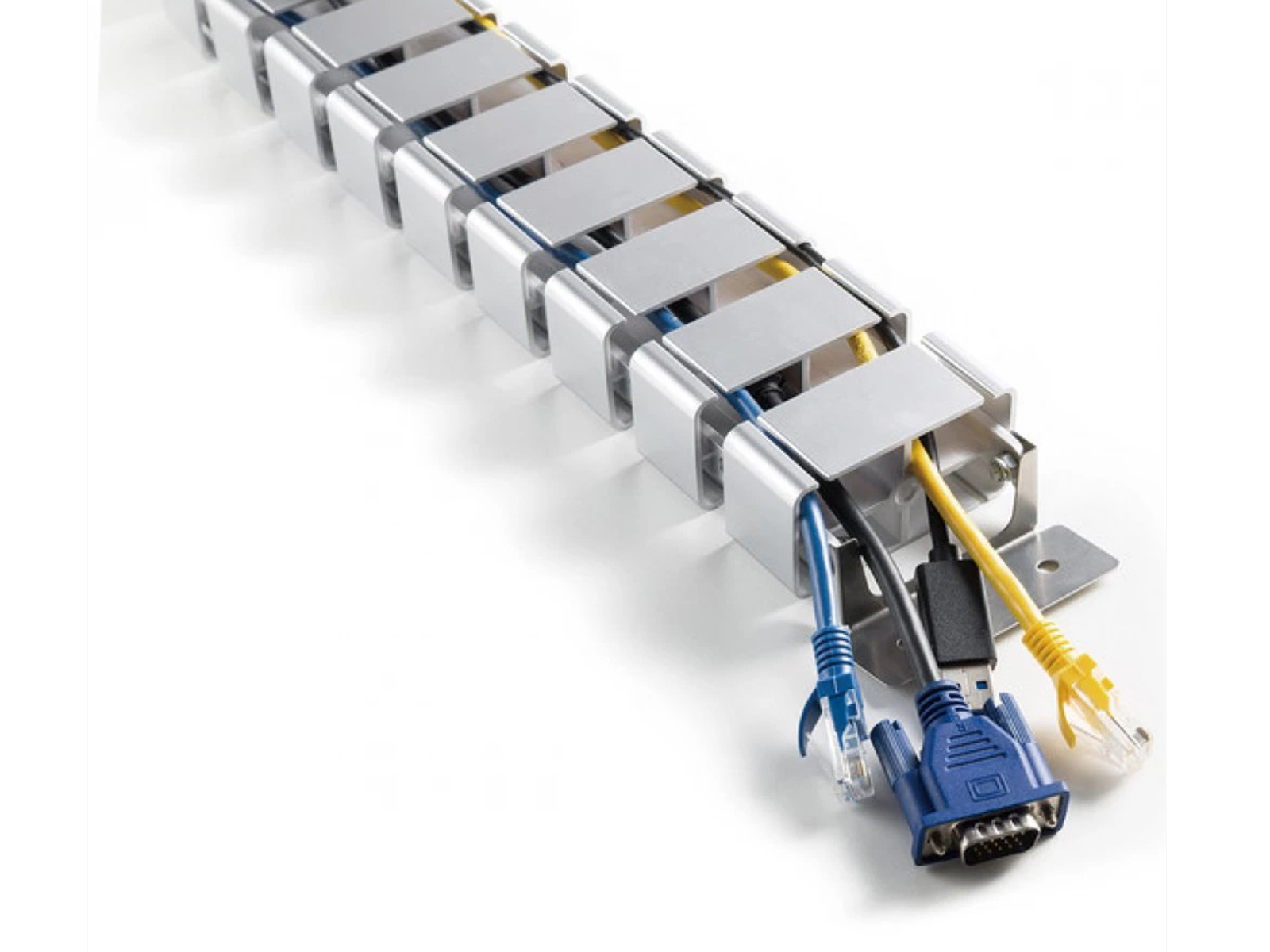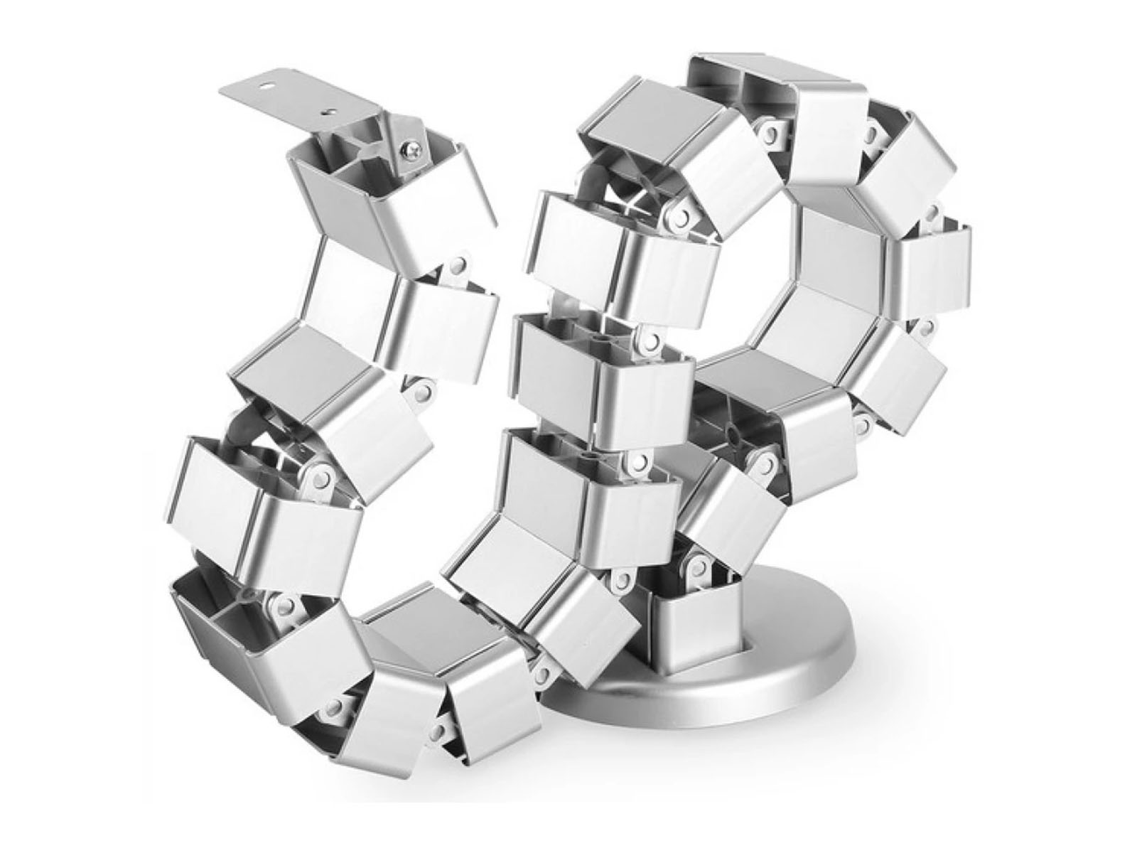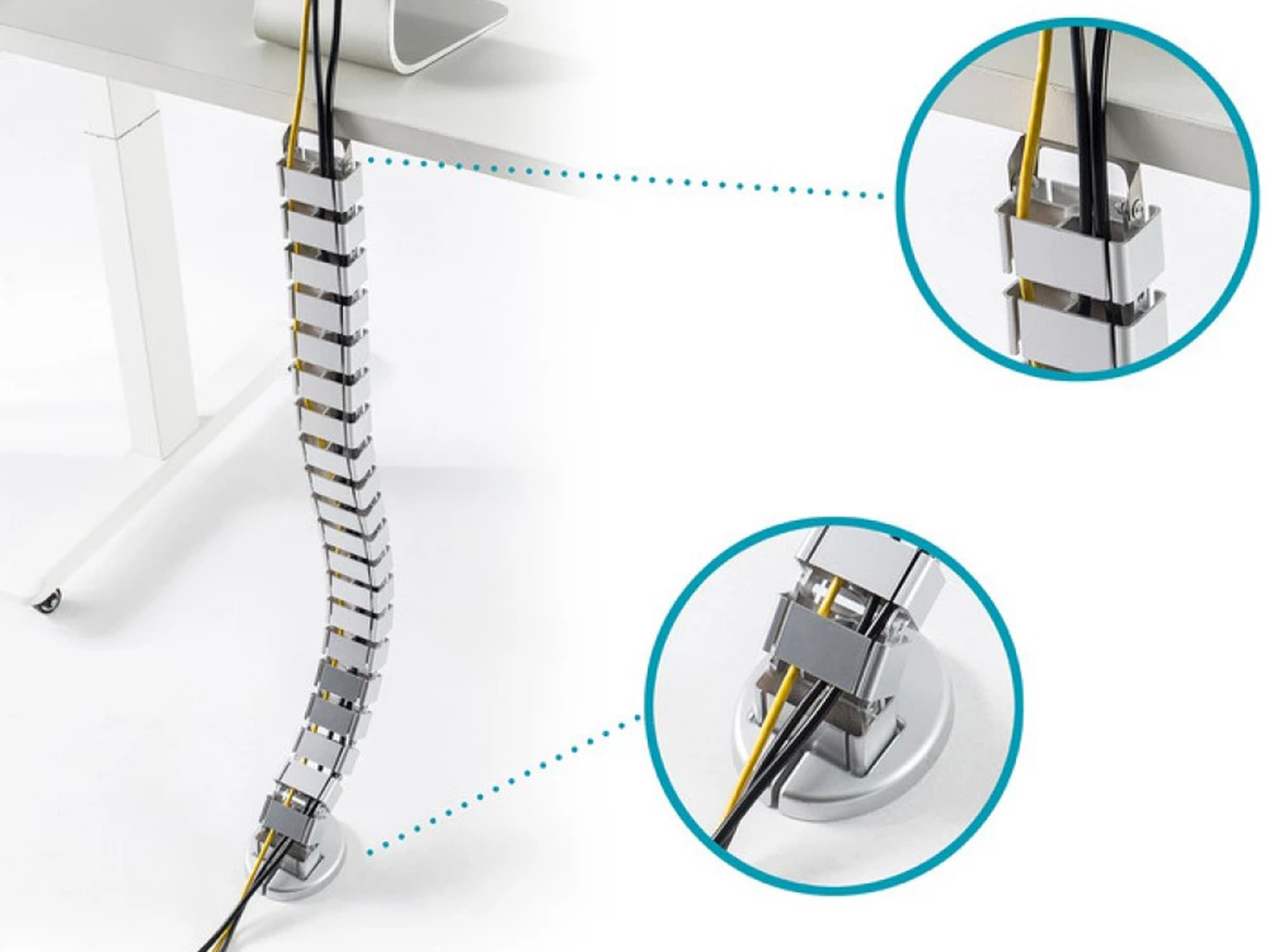 Rugalmas kábelvezető állítható hosszúsággal. Ezüst színben, asztallap alá rögzíthető, hossza a megfelelő magasságra állítható, anyaga: ABS műanyag