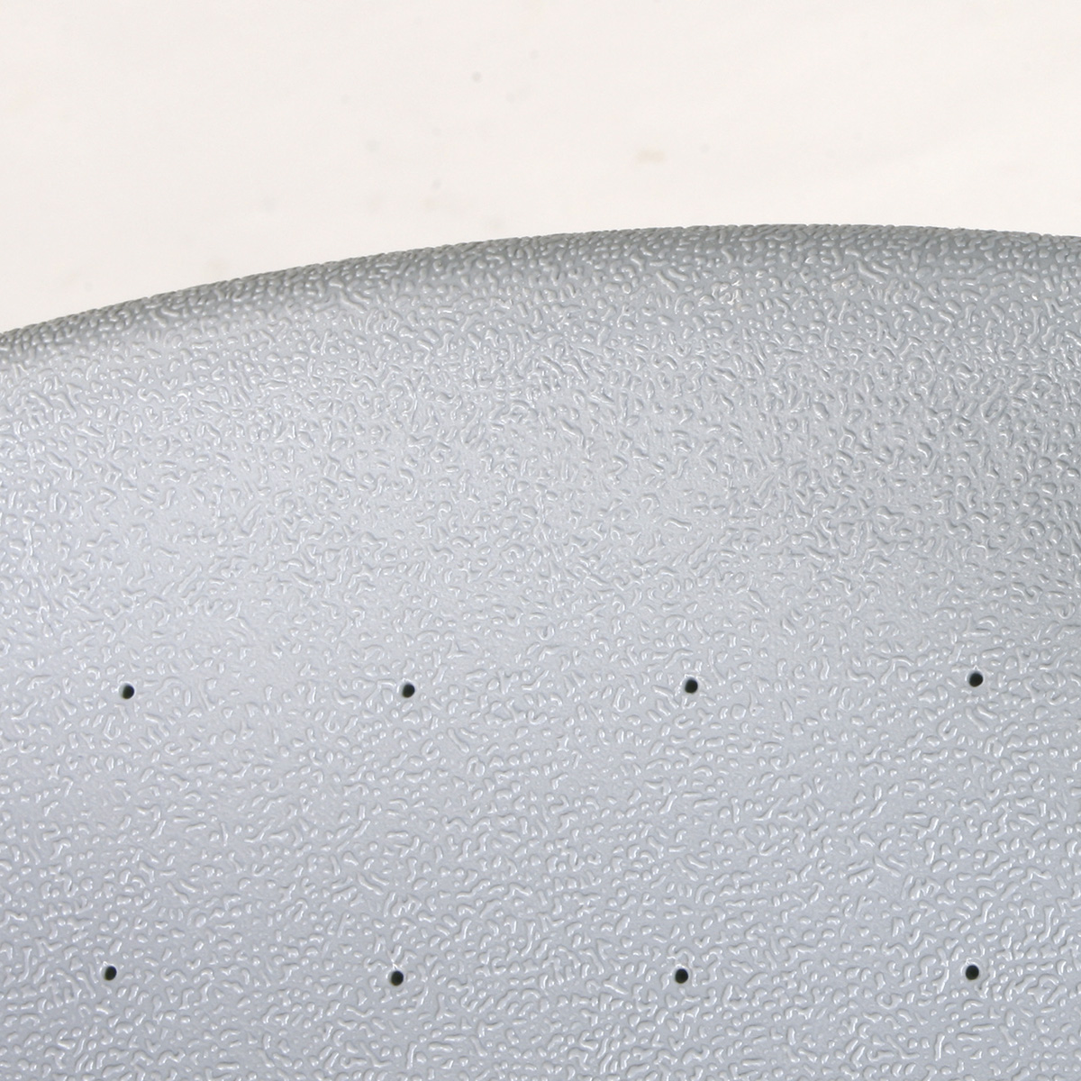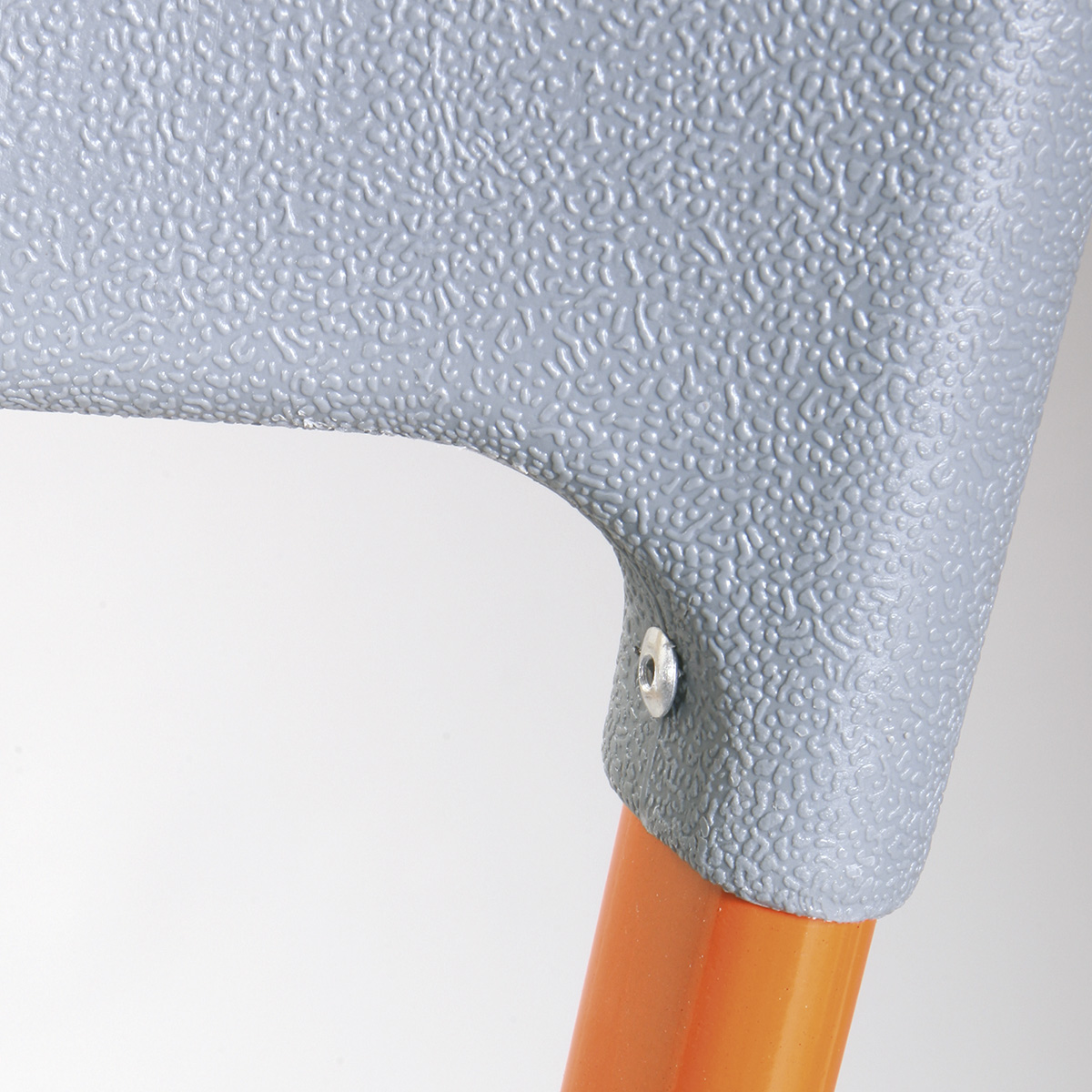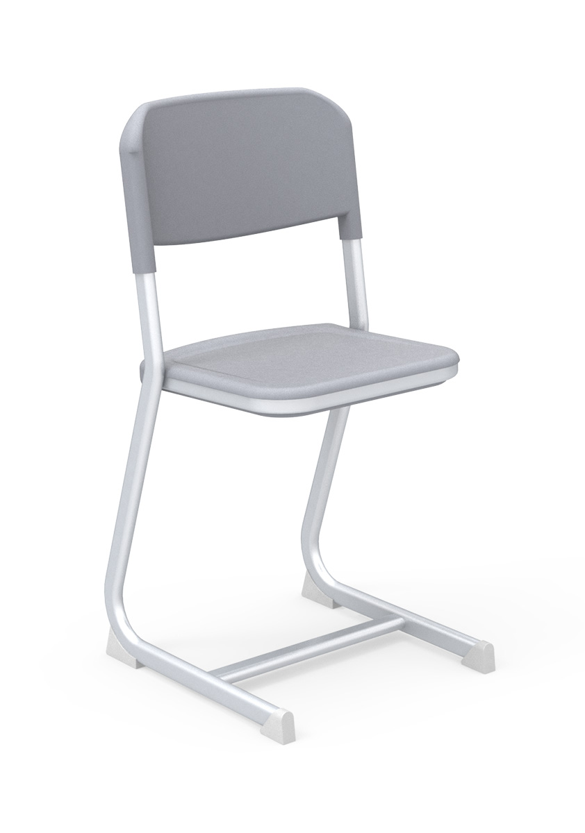 vázszerkezet: 38*20 mm-es síkovál cső, szinterezett C formájú, műanyag végzáró elem. Ülő- és háttámla polipropilén, lélegző műanyag ülőke és támla, melyek légkamrás szerkezete egyaránt biztosítja a kívánt stabilitást és a test mozgásának rugalmas követését. Nehezen rongálható kivitel. Ülőfelület mérete: szélesség: 38 cm, mélység: 38,5 cm, légkamrás ülőfelület vastagság: 6 cm. Háttámla mérete: szélesség: 42 cm, légkamrás támla magasság: 23 cm, műanyag szín: középszürke, rakásolható kivitel.
