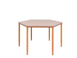 A Justy 2 személyes hatszög asztal vázszerkezete állítható magasságú, amelynek külső csöve 45 mm-es, a belső cső 40 mm átmérőjű, 2 db láb végén szintezhető műanyag padlóvédő elem, 2 db láb végén fékezhető görgővel készül. Asztallap alatt: 30*20 mm-es zártszelvény, szinterezett. Asztallap: 18 mm vastag laminált bútorlap, 2 mm vastag ABS élzárás, kerekített kivitel. A Flex Justy 1 személyes hatszög asztal állítható magasságú hatszög asztal magassága szerszámmal történik. Önmagában és 1 személyes 60 fokos trapézasztallal is használható. A termékkel könnyendén alakítható a tér, tökéletes eleme az okos tantermeknek, STEAM laboroknak, csoportszobáknak, könyvtáraknak, közösségi tereknek.