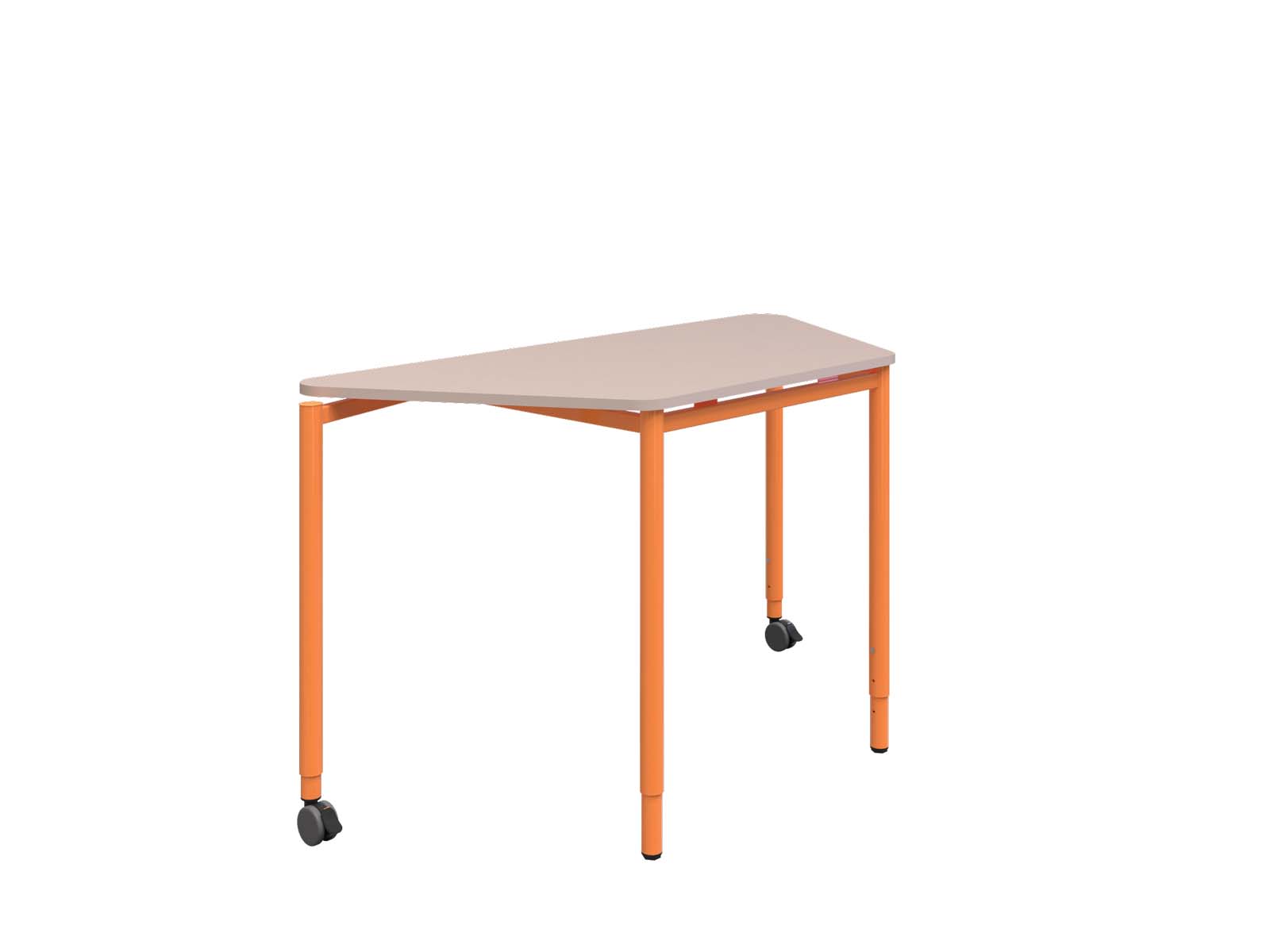 laminált asztallap, kerekített, állítható, rakásolható, sorolható2 db fékezhető görgővel