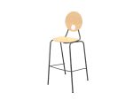 A Kaleido kör támlás bár szék vázszerkezete: vázszerkezet: 18*2 mm-es szinterezett acél cső váz, lábtartós kivitel, kör támlás szék önbeálló műanyag padlóvédő elemmel, ülőfelület alatt távtartóval, két oldalon bükk rétegelt lemez, natúr lakkozott ülő-és háttámlával, ülőflelület mérete: szélesség: 39,5 cm mélység: 37 cm, vastagság: 7mm , háttámla mérete:átmérő: 30 cm, vastagság: 7 mm, rakásolható kivitel (max. 5 db). Ülésmagasság: 75 cm, háttámla magasság: 115 cm