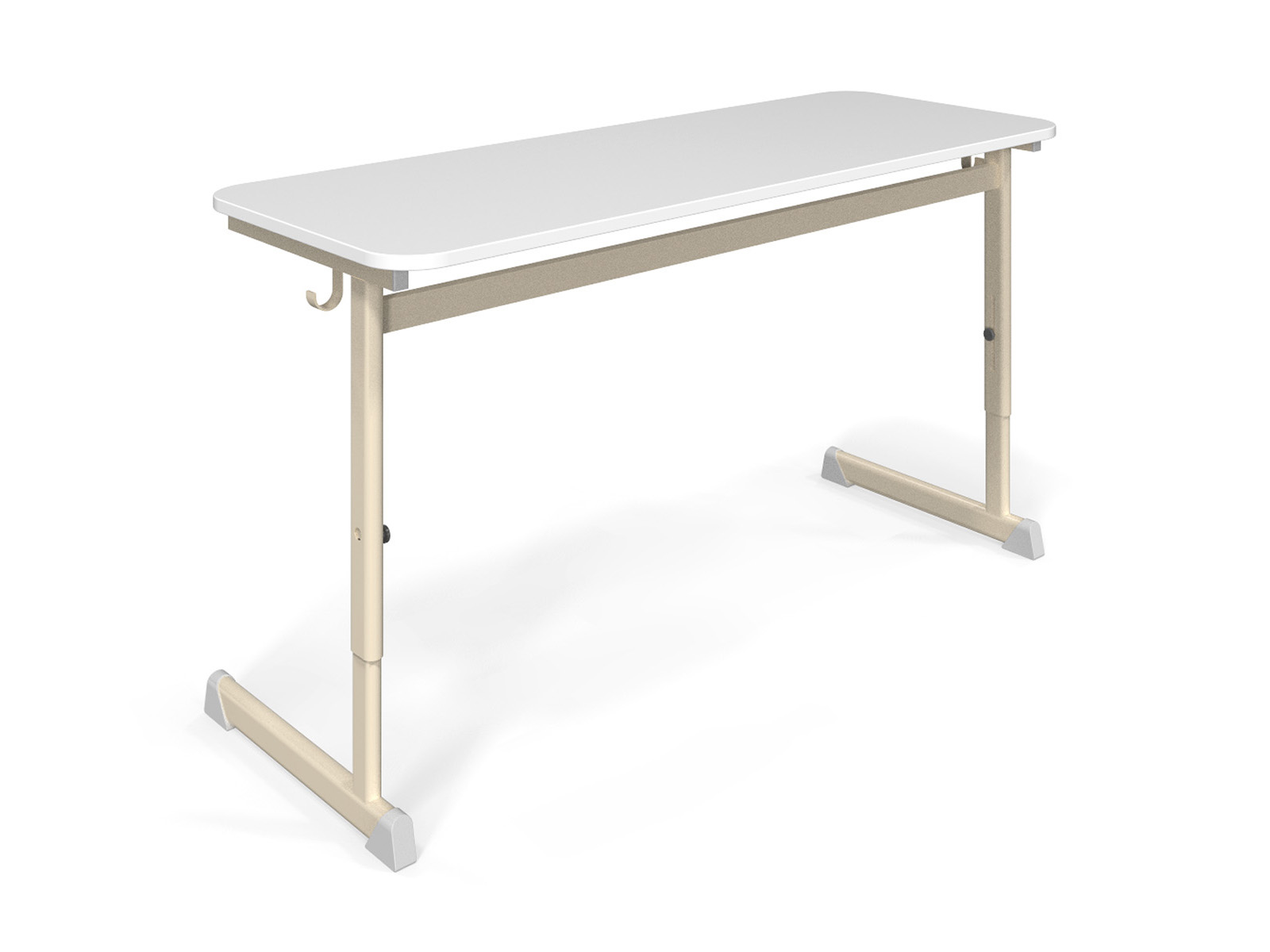 A KEX asztal vázszerkezete: teleszkópikusan egymásba csúszó 50 x 25 mm-es és 45 x 20 mm-esoválcsövek segítségével állítható. 3 fix korcsoporti magasságra lehet beállítani az asztalt, piskóta alakú horony segítségével. A marokcsavar kitekerésével a rögzítő tönk benyomható,így csúsztatható láb a következő helyzetbe, melynek aktuális korcsoporti szín és szám megjelölését a láb külsején levő lyukon keresztül láthatjuk. Az asztallap 18 mm vastag laminált bútorlap, 2 mm vastag ABS élzárás, kerekített