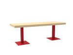 A robusztus Kraft padok minimalista designja jól illeszkedik bármilyen stílusú környezetbe. Az egyes elemek variációja minden térben megoldást nyújthatnak. A lábak elektrosztatikus porszórással felületkezelt 50×50 mm-es zártszelvényből készülnek, a talp 150×150 mm-es acéllemez, melynek furatai teszik lehetővé a padlóhoz rögzítést. Az ülőfelület 40 mm vastag tömbösített, lakkozott, natúr színű tölgyből készül.
