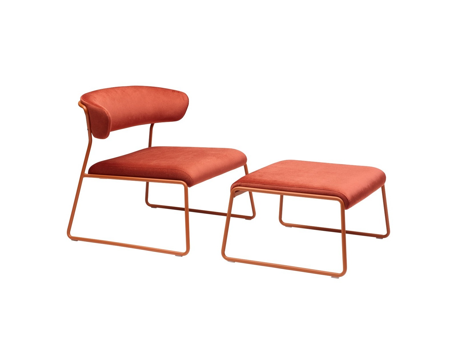 16 mm átmérőjű acélcsővázas pihenő karszék, szánkótalpas kivitelben, kárpitozott üléssel és háttámlával. Beltérbe ajánlott. Felár ellenében lábtartó (ülőke) is rendelhető hozzá.