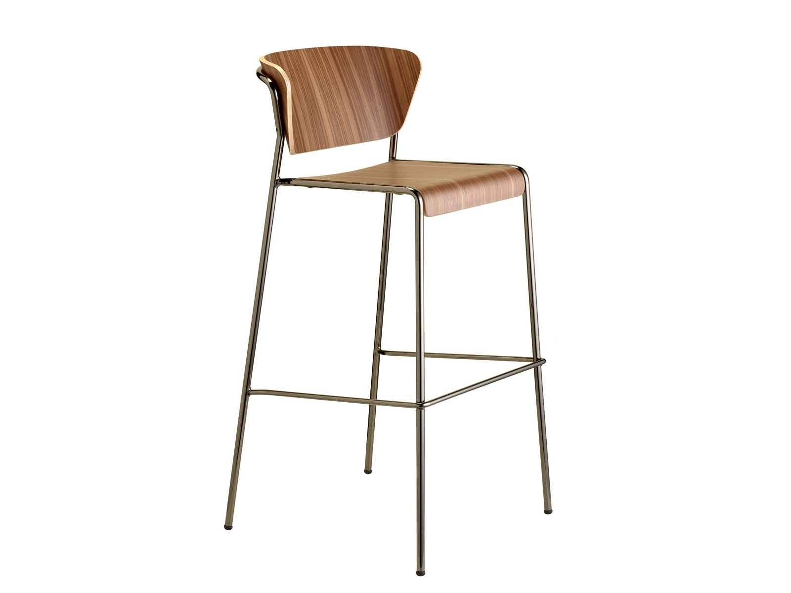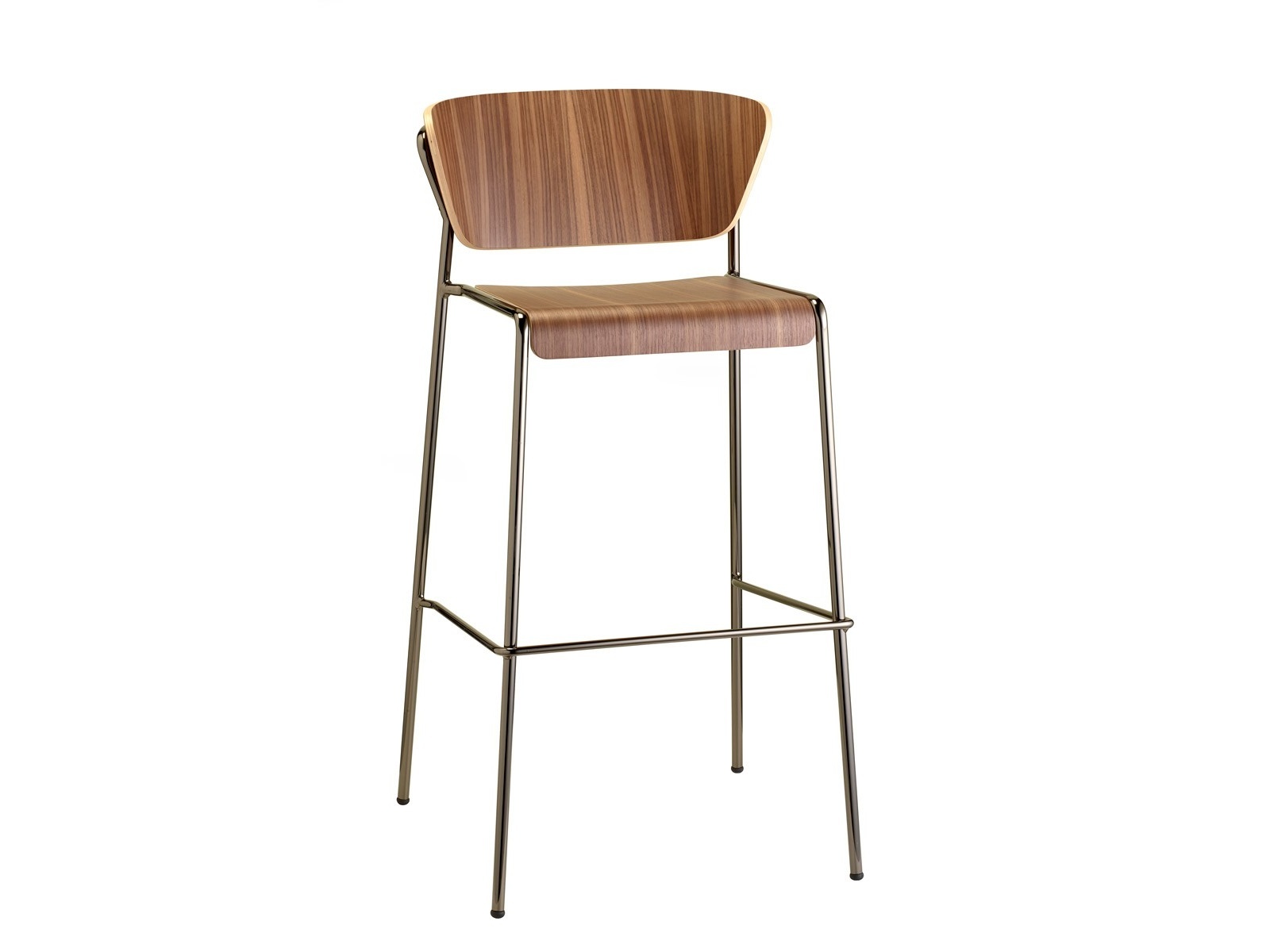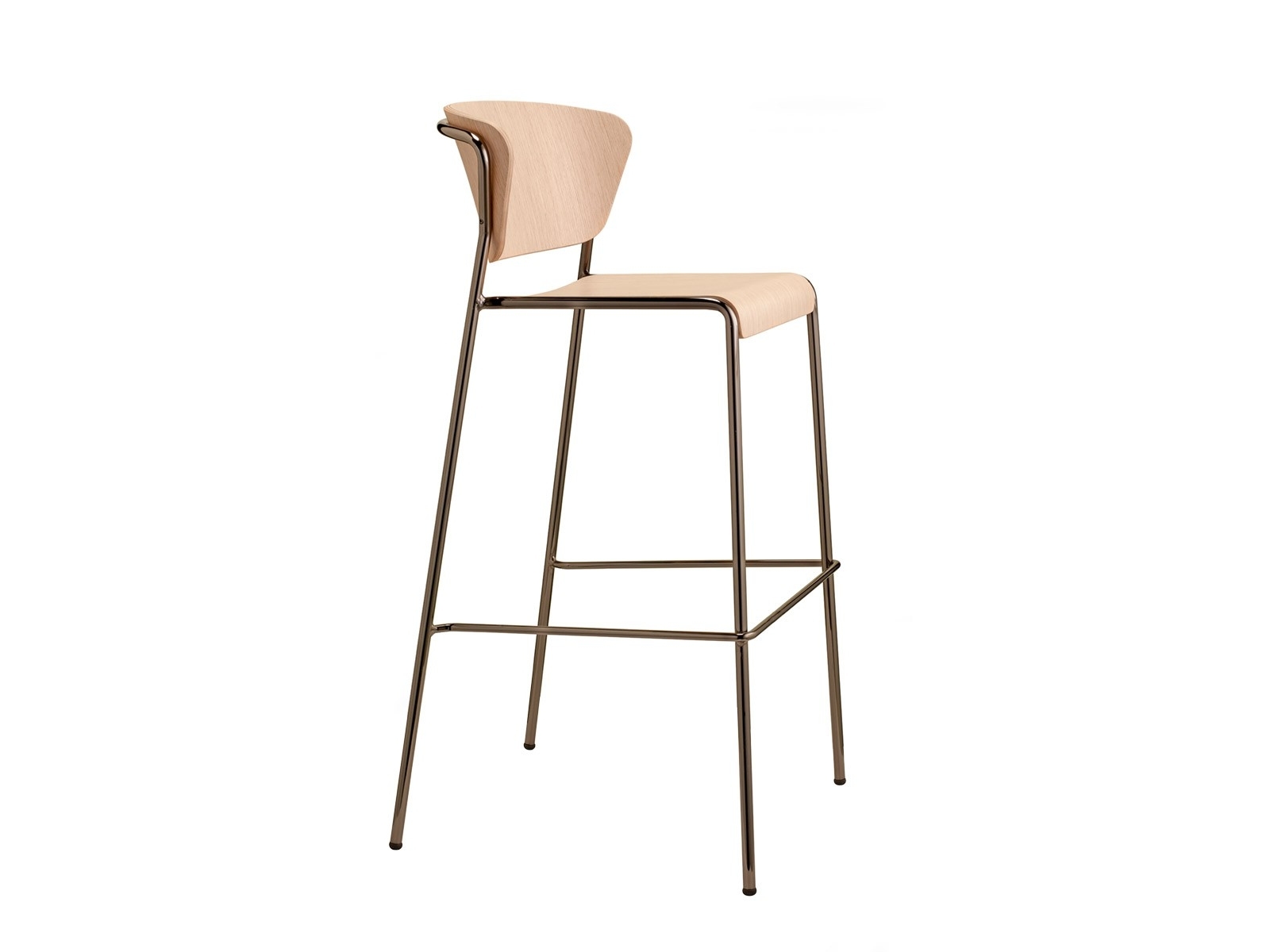 16 mm átmérőjű acélcsővázas bárszék, rétegeltlemez ülőlappal és háttámlával. Beltérbe ajánlott. Ülésmagassága 65cm. Rakásolható.