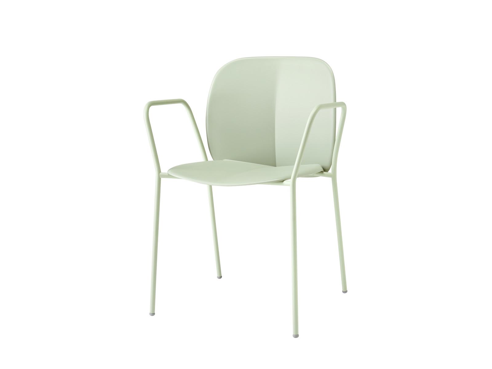 Fémvázas szék, amelynek lábai és karfái 16 mm átmérőjű acélcsőből készülnek. Az ülőfelület és a háttámla technopolimer anyagának és horganyzott fém vázának köszönhetően kültéren is kiválóan megállja a helyét. Felár ellenében kérhető kárpitozott ülőfelülettel is. Rakásolható kivitel. Színenként 2 db-os egységekben rendelhető.
